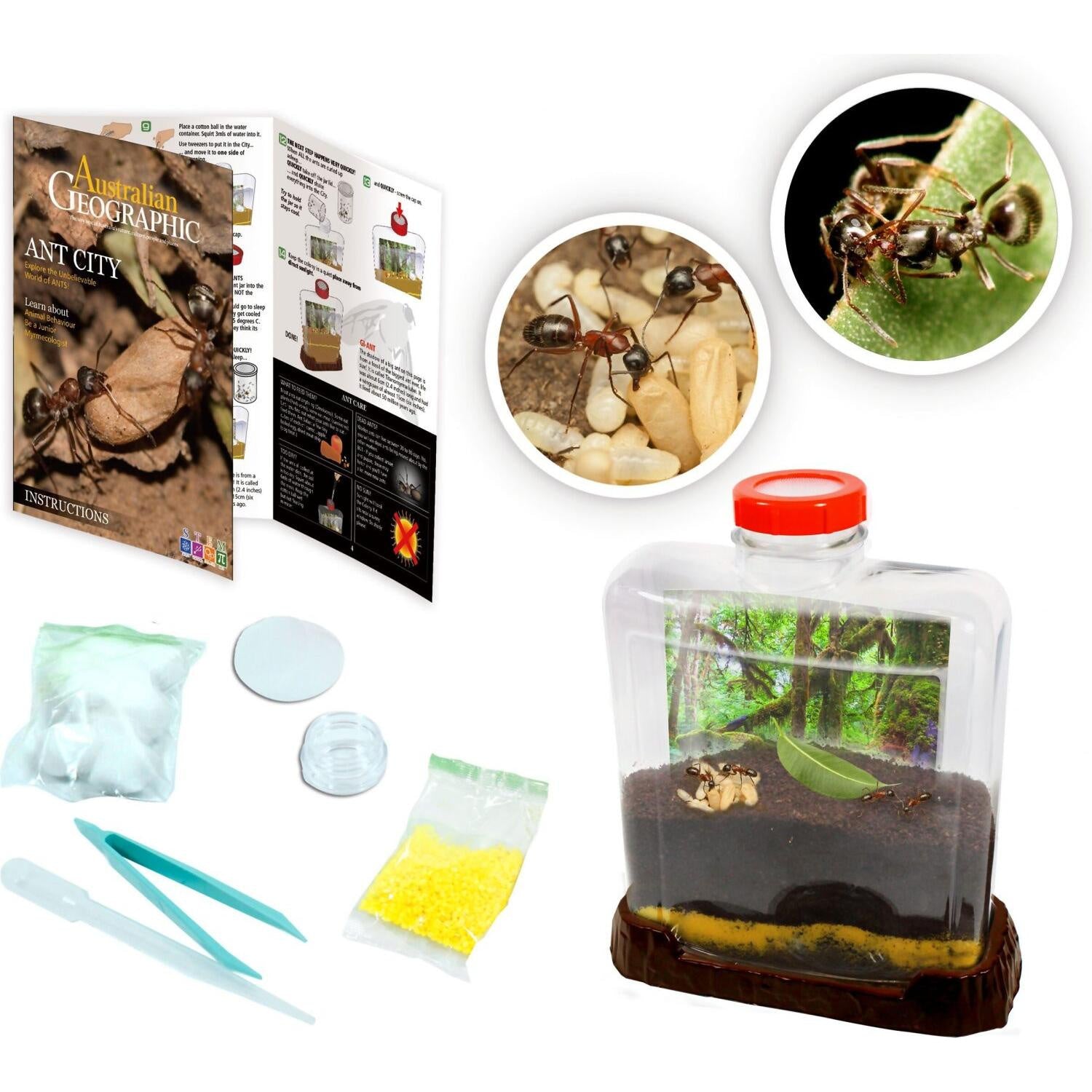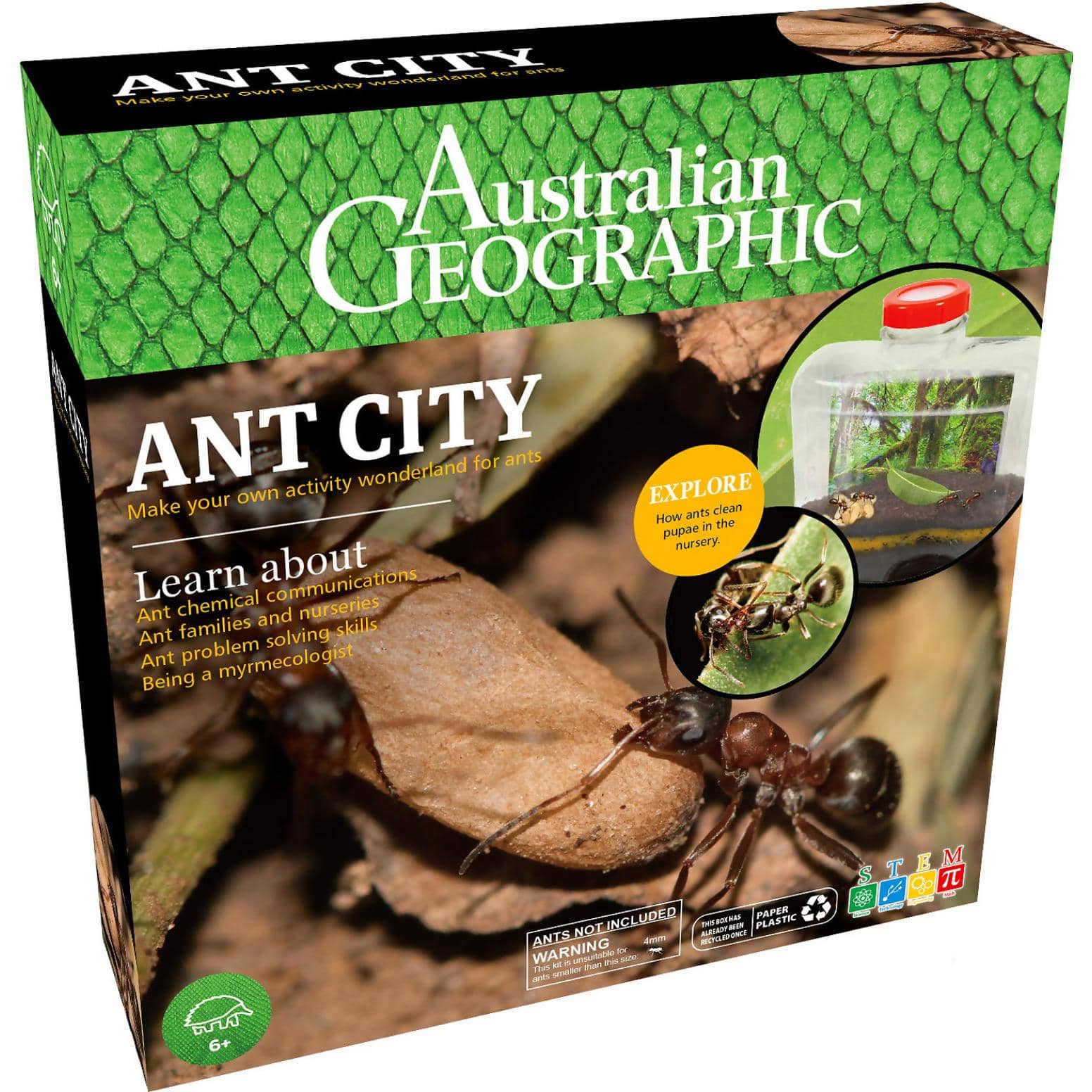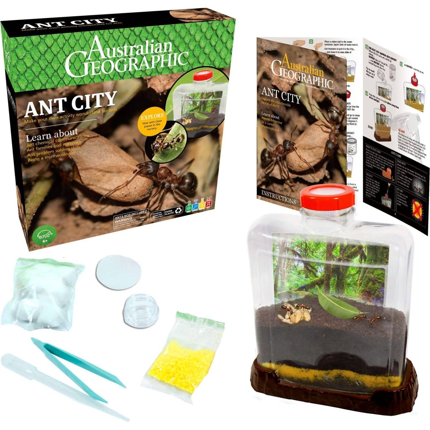 The Australian Geographic Ant City is designed to help children develop their knowledge of science and nature. By observing ants as they excavate and build their home, children can learn about the behaviour and intelligence of these fascinating creatures. The included instructions feature real science explorations that will leave children amazed by the powers of ants.