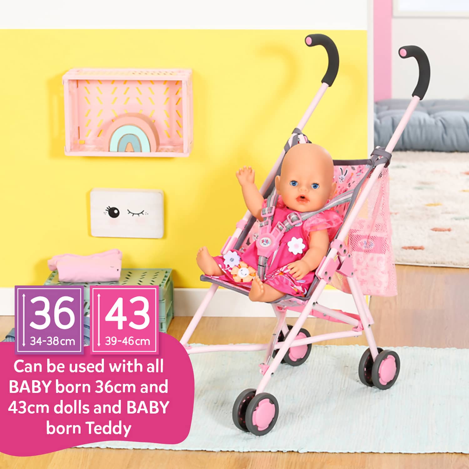 Our BABY born Stroller with Bag fits dolls up to 43cm.