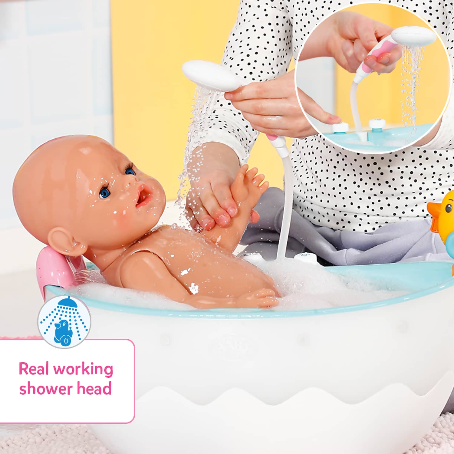 If your little one wants some real water play fun, simply fill up the tub and turn the shower on to make real water flow from the head! You can even take the shower hose out of its holder to give BABY born a good wash.