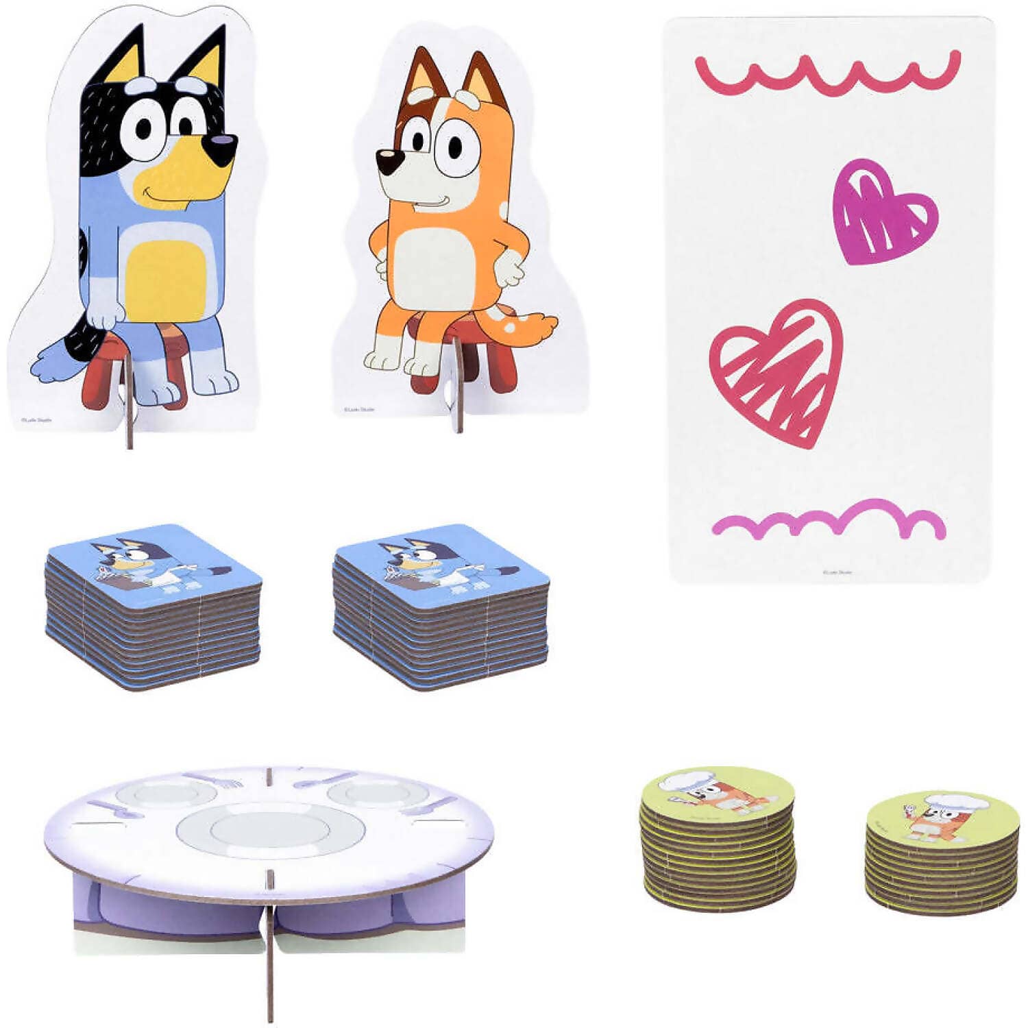 Bring the fun of Bluey’s “Fancy Restaurant” episode to life with the Bluey - Fancy Restaurant Game! Kids join Bluey and Bingo as they match food cards to help Dad prepare a special dinner for Mum. With a table and Mum and Dad figures included, little ones can dive into imaginative roleplay while building memory and matching skills.