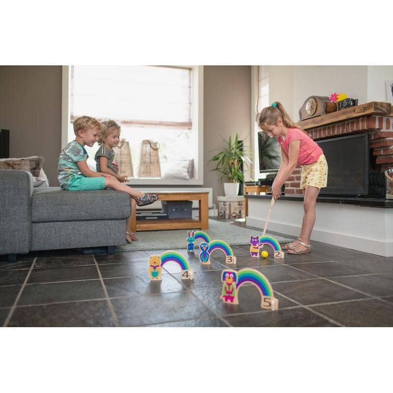 Follow the rainbow route by getting the ball with the least amount of hits through all the gates.