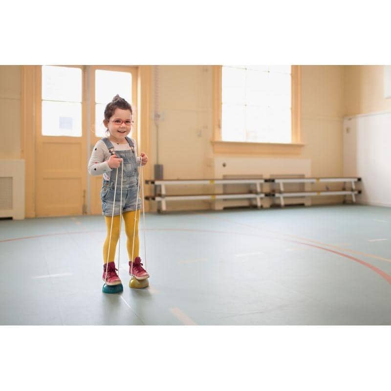 Can you cross the finish line with these fun and colourful walking bobbins? Practice your balance step by step!