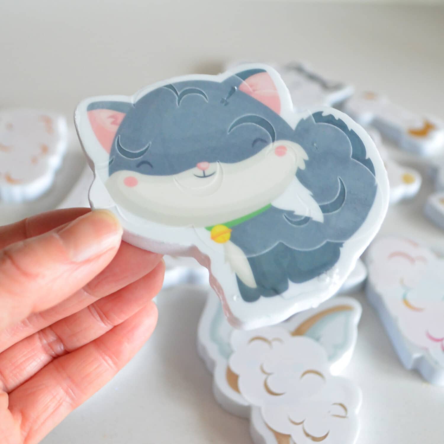 The animals have had a messy day and need your help to get clean. Dunk, splash or pour warm water on the bath stickers and watch them 'clean' to reveal the furry friend underneath.
