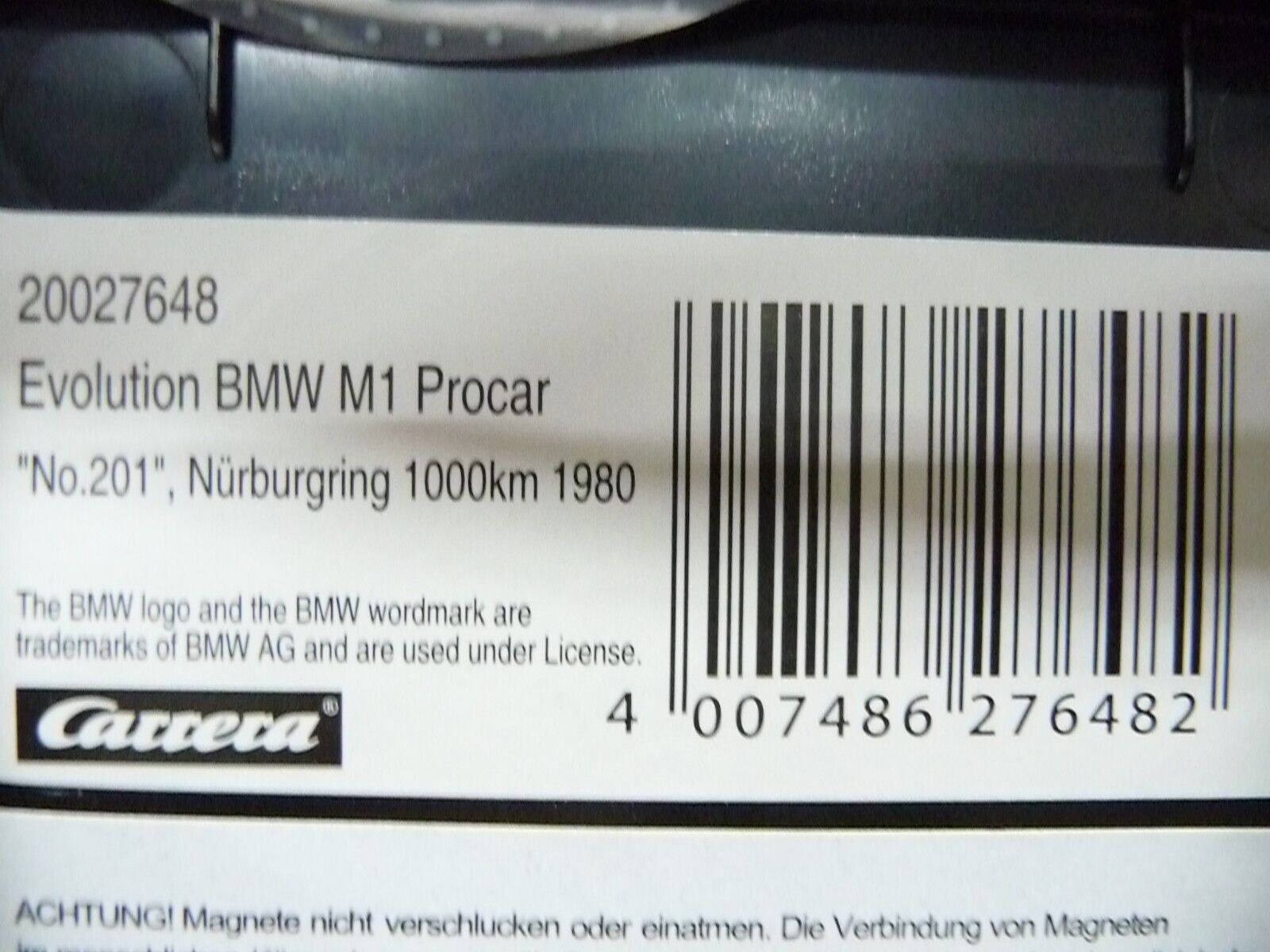 Carrera EVO 1:32 BMW M1 Procar No. 201 Nurburgring 1000km 1980 suit scalex