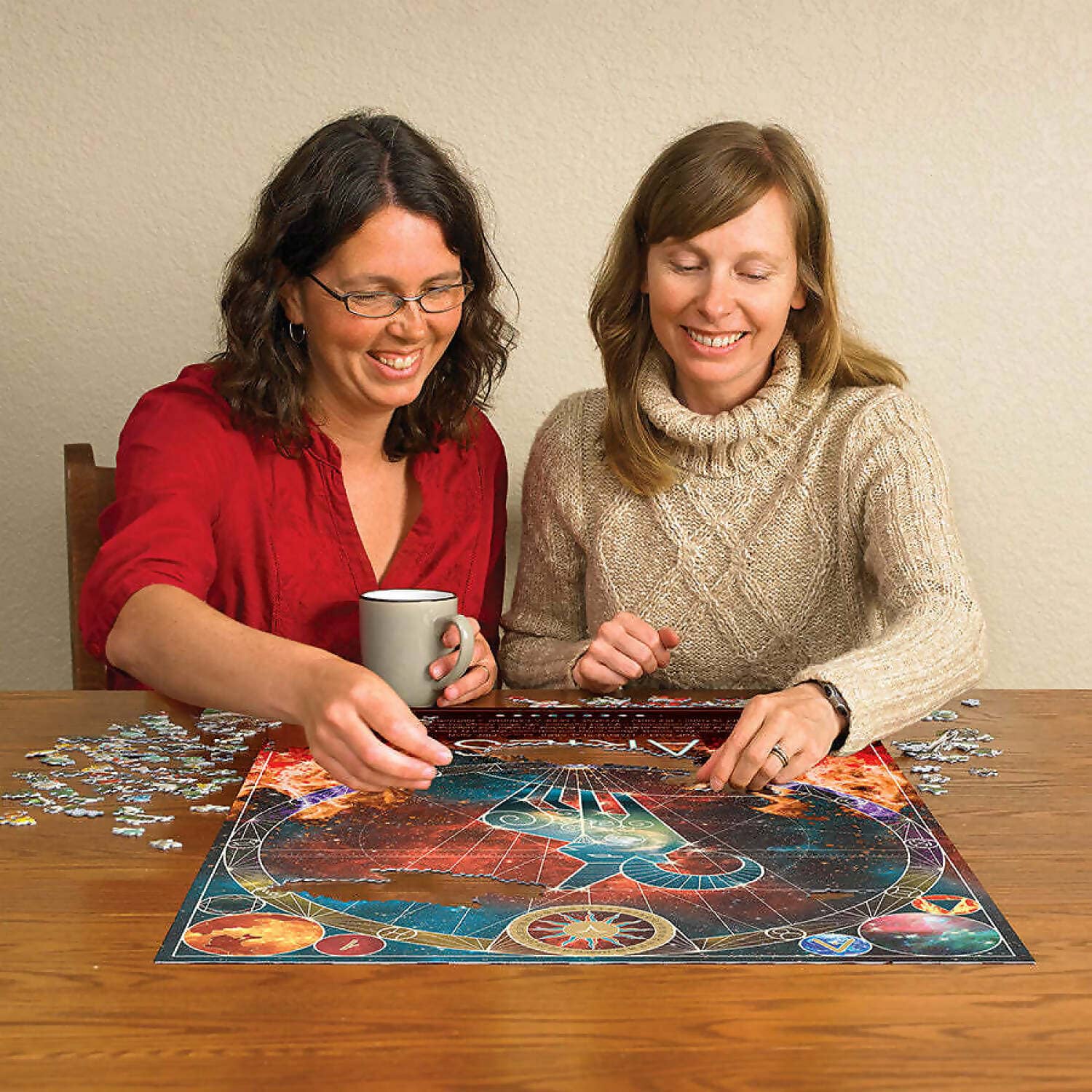 Each 500 piece Zodiac puzzle includes the constellation, symbol, ruling planet, polarity, modes and stones.