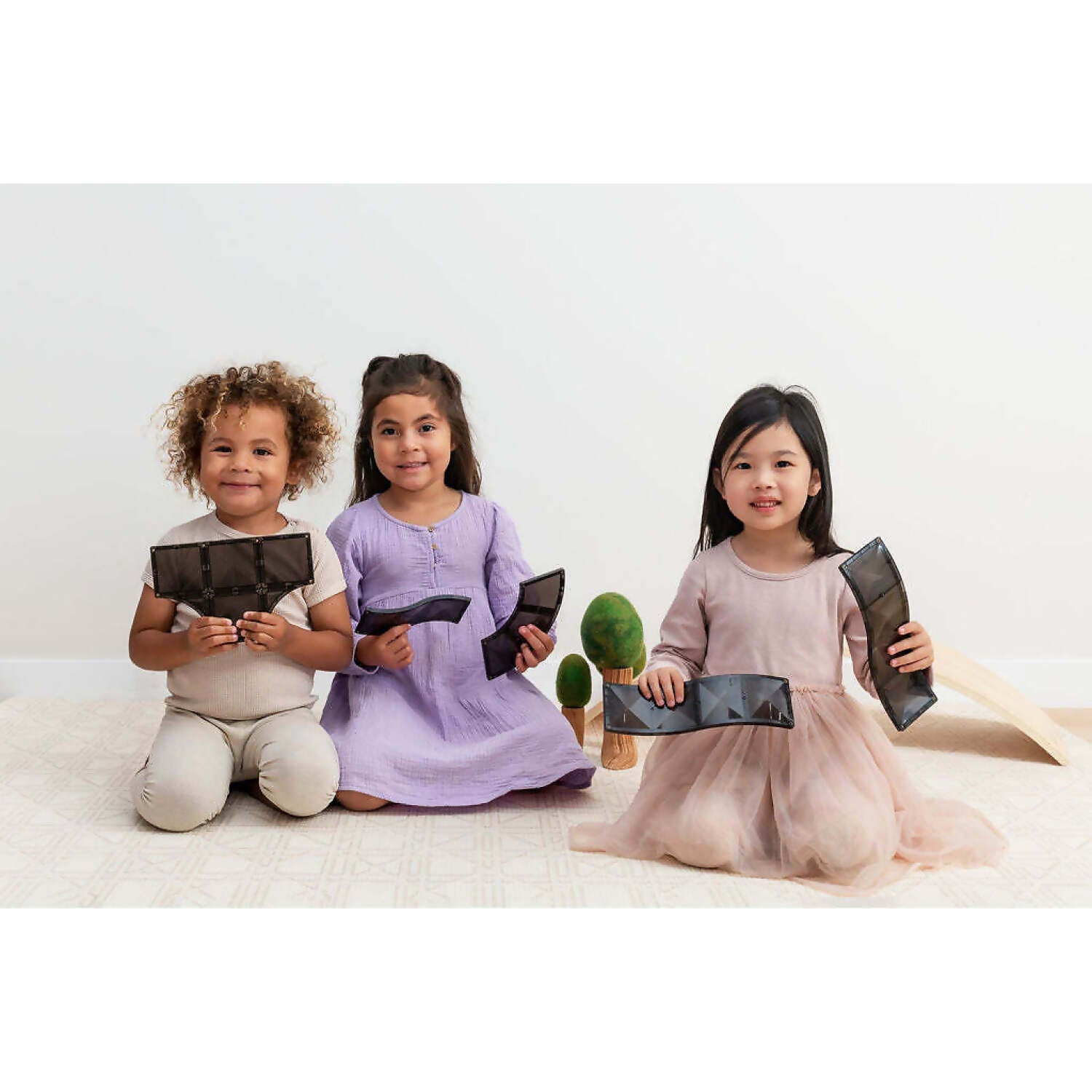 The captivating black tiles enhance the visual for roads, ramps and runways, while the exclusion of white lines and road markings maintains the open-ended nature intended by CONNETIX products, allowing children to reimagine pieces into their own creative builds.