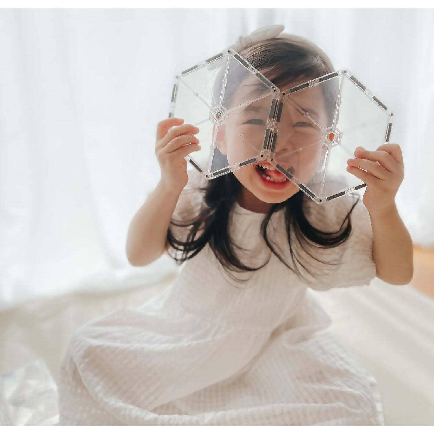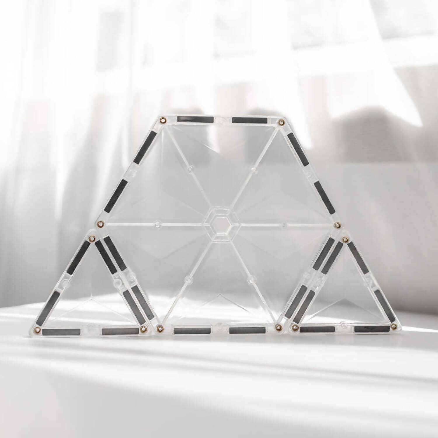 Unlock imagination and limitless play possibilities with the CONNETIX 34 Piece Clear Pack! With a variety of dazzlingly transparent magnetic tiles (including large hexagons!), this pack brings new dimensions and clarity to CONNETIX play. Creativity and imaginations will soar as children build unlimited inspired creations from Frozen castles, sparkling snowflakes and icy igloos to functional windows, glistening glasshouses and crystal globes.