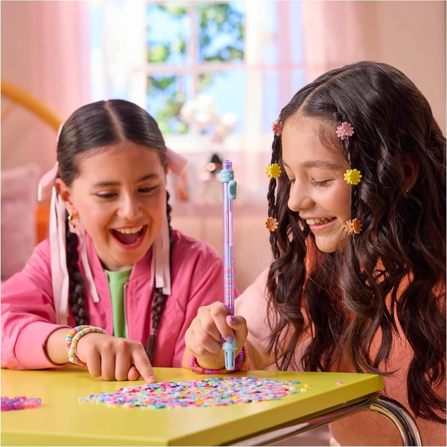Create stylish heishi bracelets in a snap with the Cool Maker Stack’d Heishi Bracelet Studio. This all-in-one bracelet kit comes with everything kids need to easily make 15 bracelets, including over 1200 colorful heishi beads, 10 feature beads, a beading pen, and more.