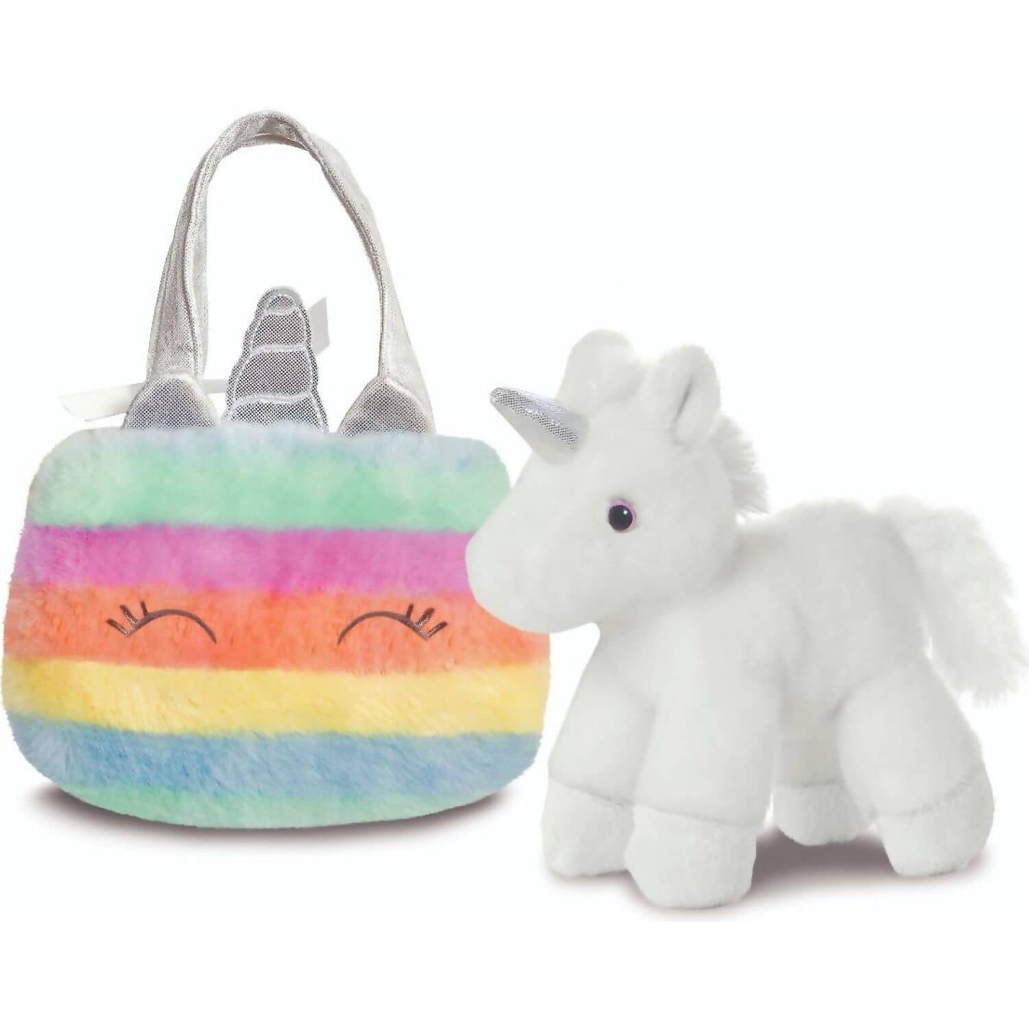 - Includes a plush unicorn and a colourful rainbow-themed bag.