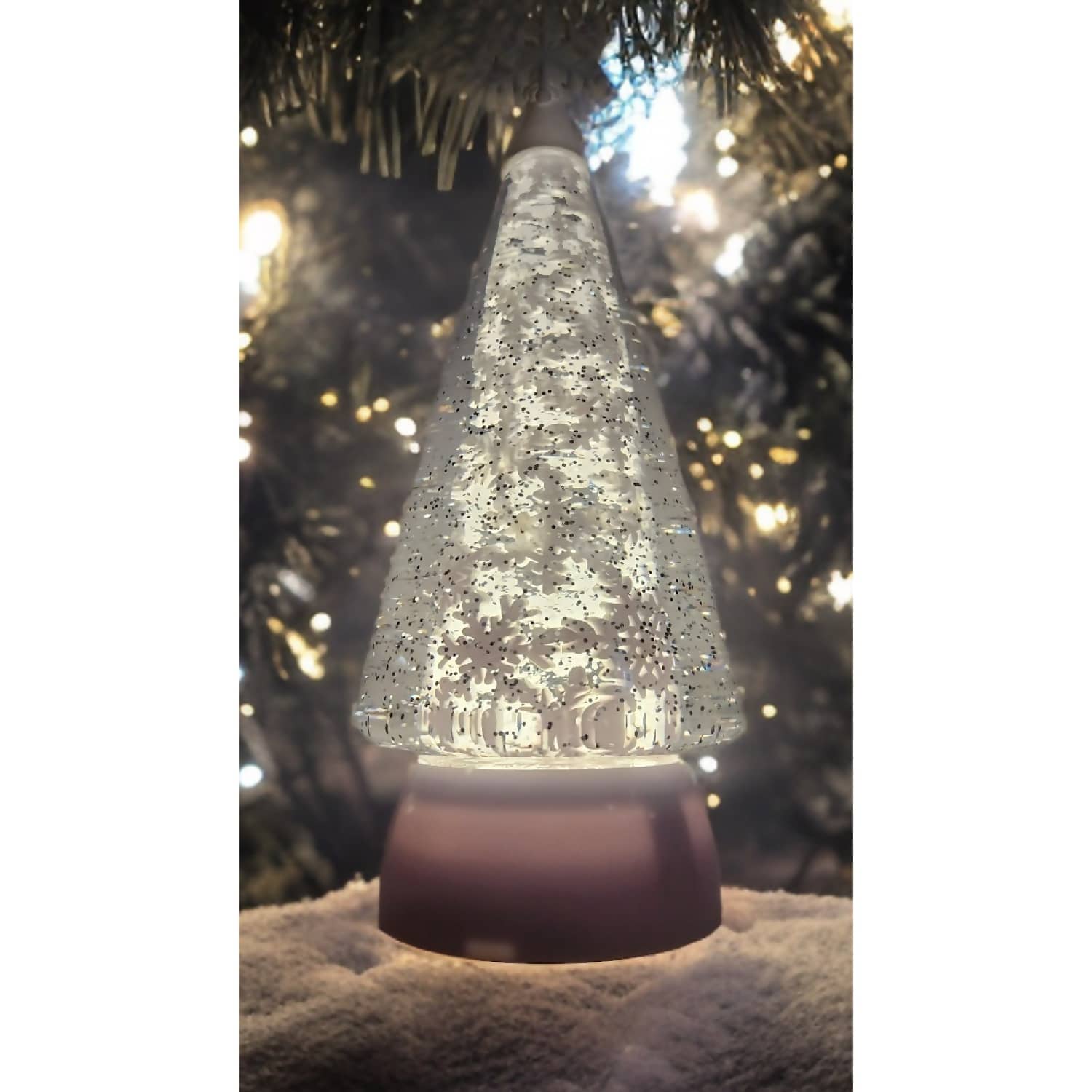 Cotton Candy - Rotating Christmas Tree White 30cm LED Lantern with Glitter Motion - Xmas
