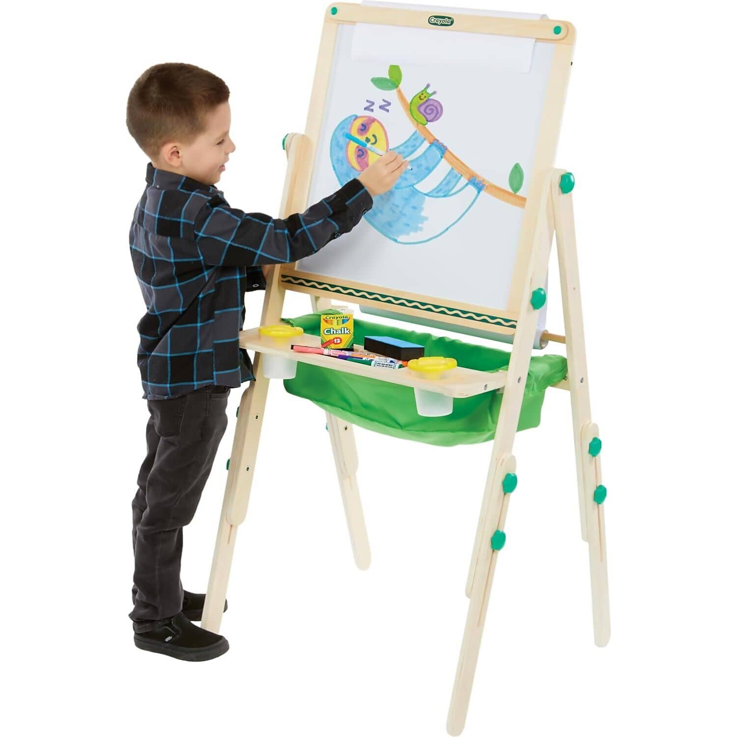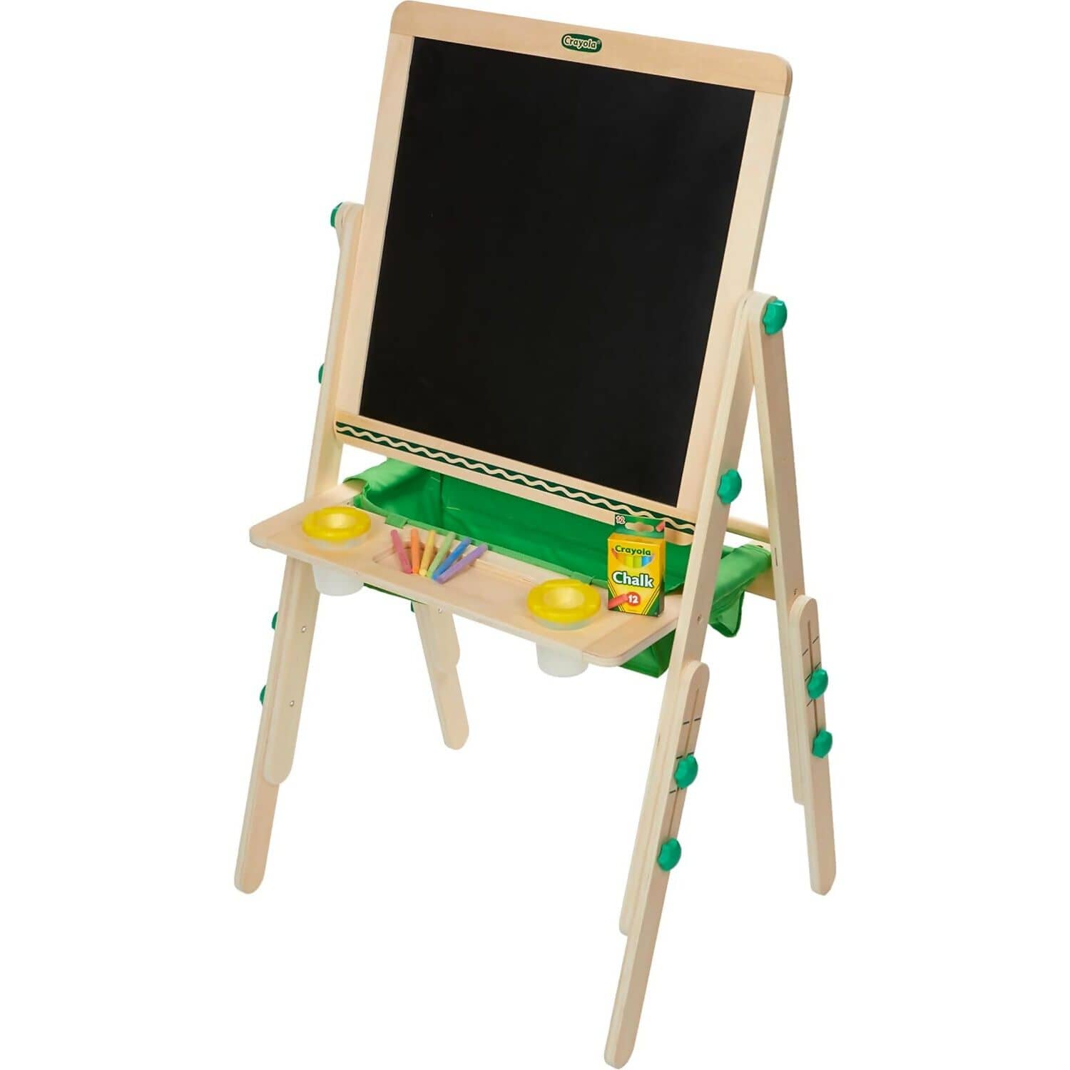 Crayola - Deluxe Wooden Kid’s Art Easel Dual Sided Dry Erase & Chalkboard