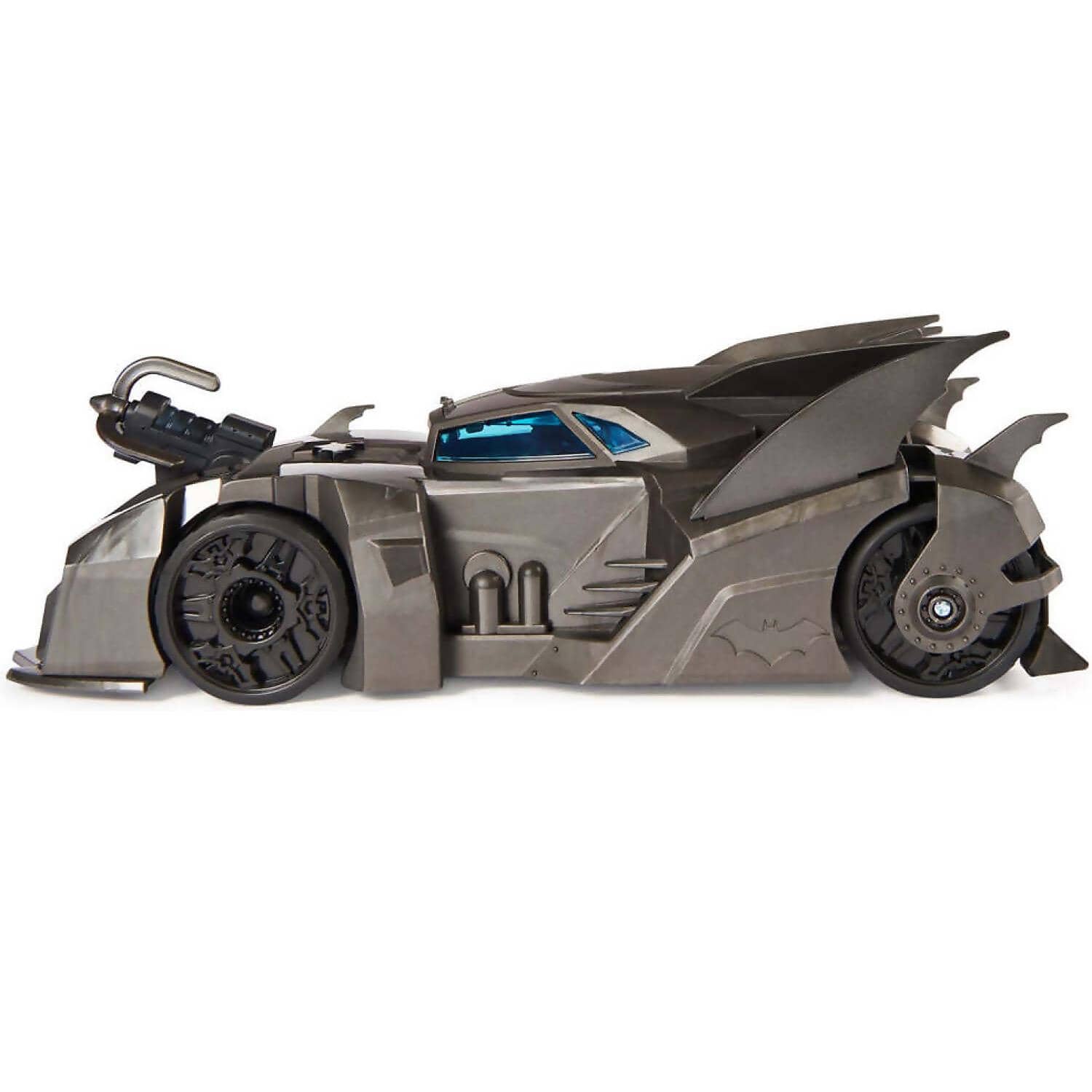 The set includes an exclusive 4-inch Batman action figure and three paper villain figures! Use the The Joker, King Shark, and Mr. Freeze paper figures as targets! Can you capture them? The Crusader Batmobile features a unique BatHook launcher, designed to capture Super-Villains on the run! Kids can use their imagination and creativity to launch the BatHook, capturing the bad guys and stopping their evil plans in their tracks. Once the villains are captured, secure them in the rear containment unit of the Batmobile.