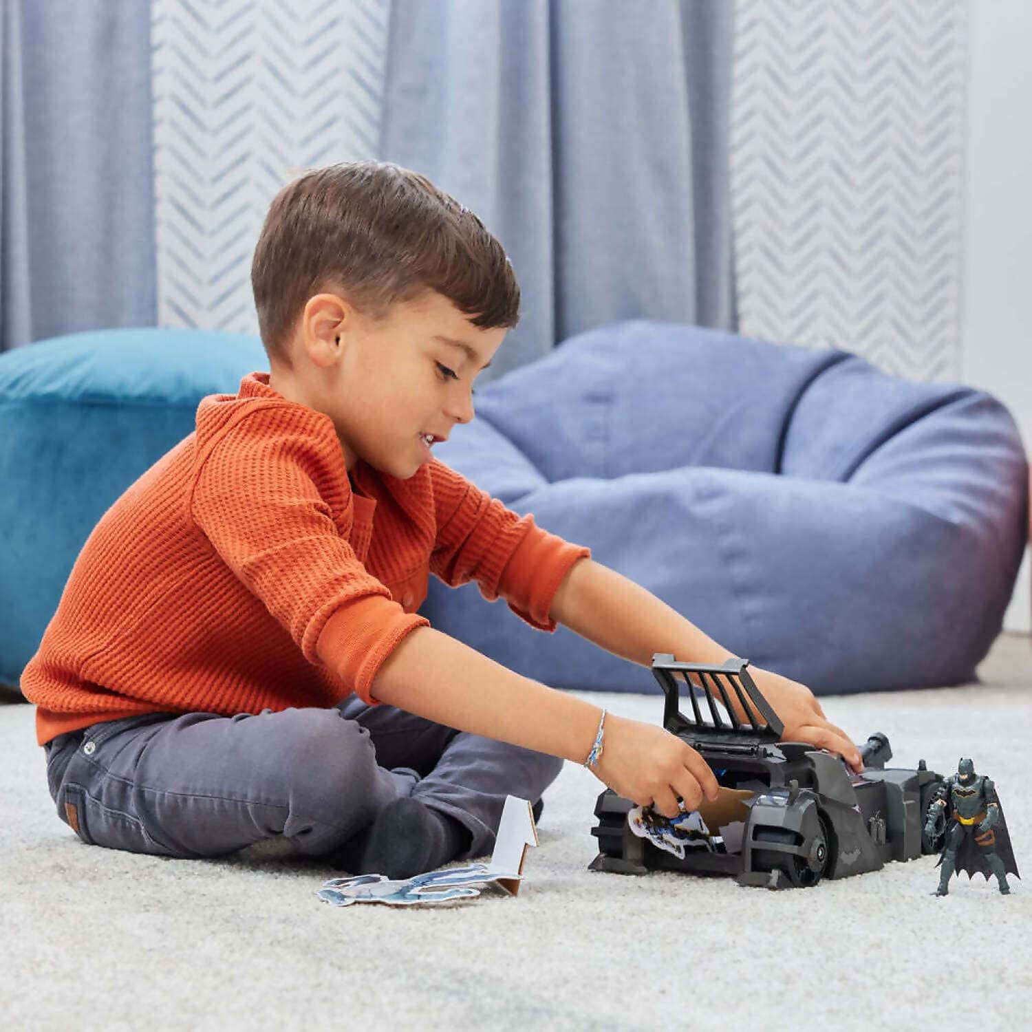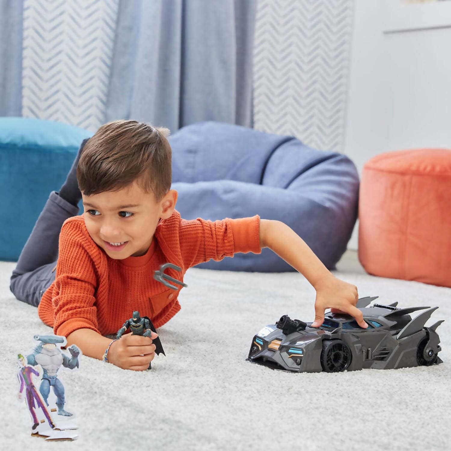 CRUSADER BATMOBILE PLAYSET: Let your child experience thrilling Gotham City adventures with the Crusader Batmobile! This set includes an exclusive 4-inch Batman action figure and 3 Super-Villain paper figures