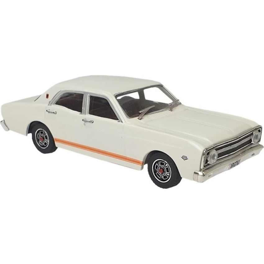 The DDA Collectibles 1:43 Scale Avis White 1967 Ford Falcon XR GT is a finely detailed diecast replica of the first GT model ever released by Ford Australia. Finished in the classic Avis White with orange accents, this model captures the bold styling and performance heritage of the original XR GT. Its sealed body design ensures a sleek presentation while preserving the crisp lines and authentic trim.