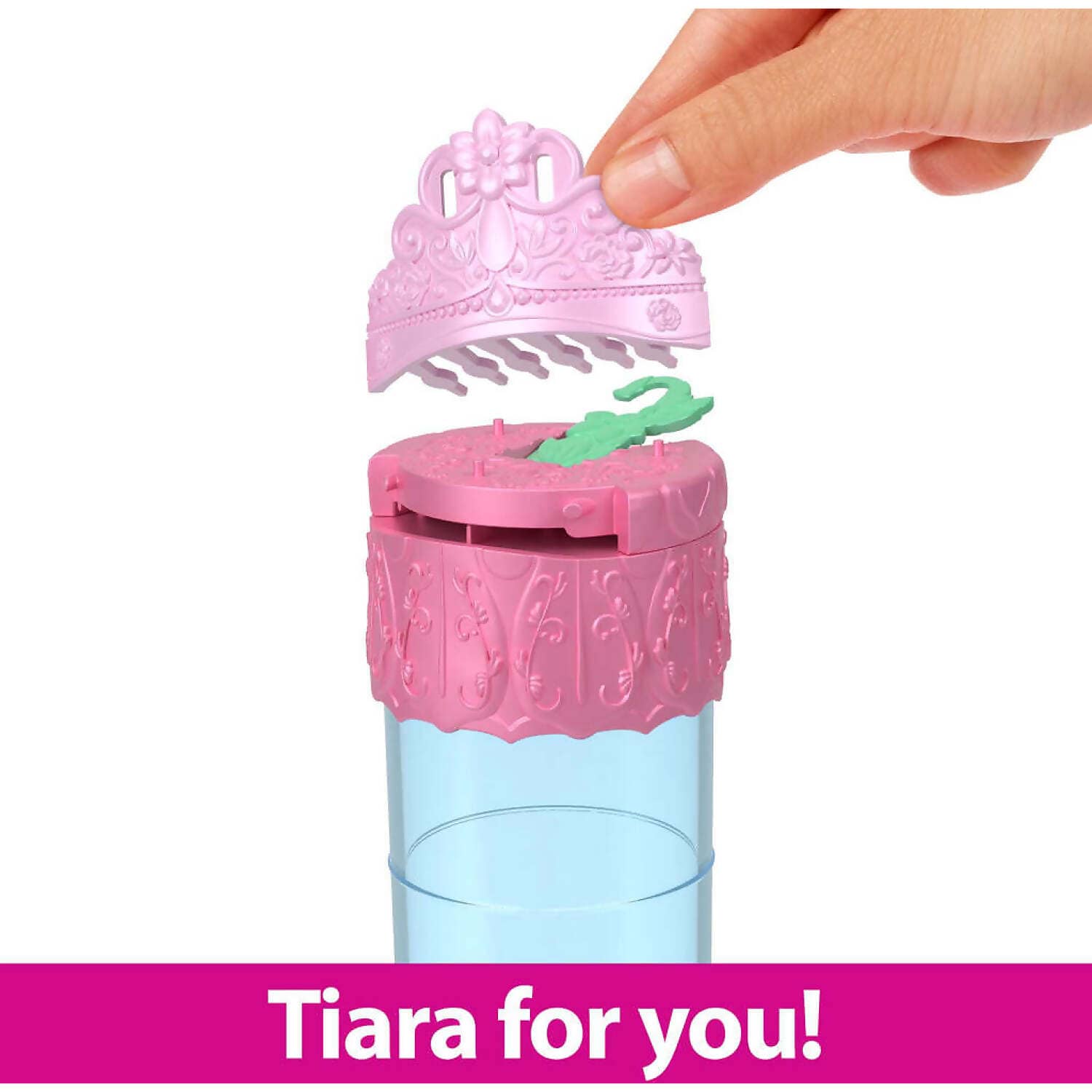 An exciting unboxing experience comes to Disney Princess small dolls! Fans will love the new Garden Party Series of Royal Color Reveal dollsbut which Princess will they get? Each doll is a mystery until water is added, activating the Color Reveal technology. Five more surprises include a soft skirt with rainbow foil details, a tiara and scented ring for the child, and garden party-themed play pieces!