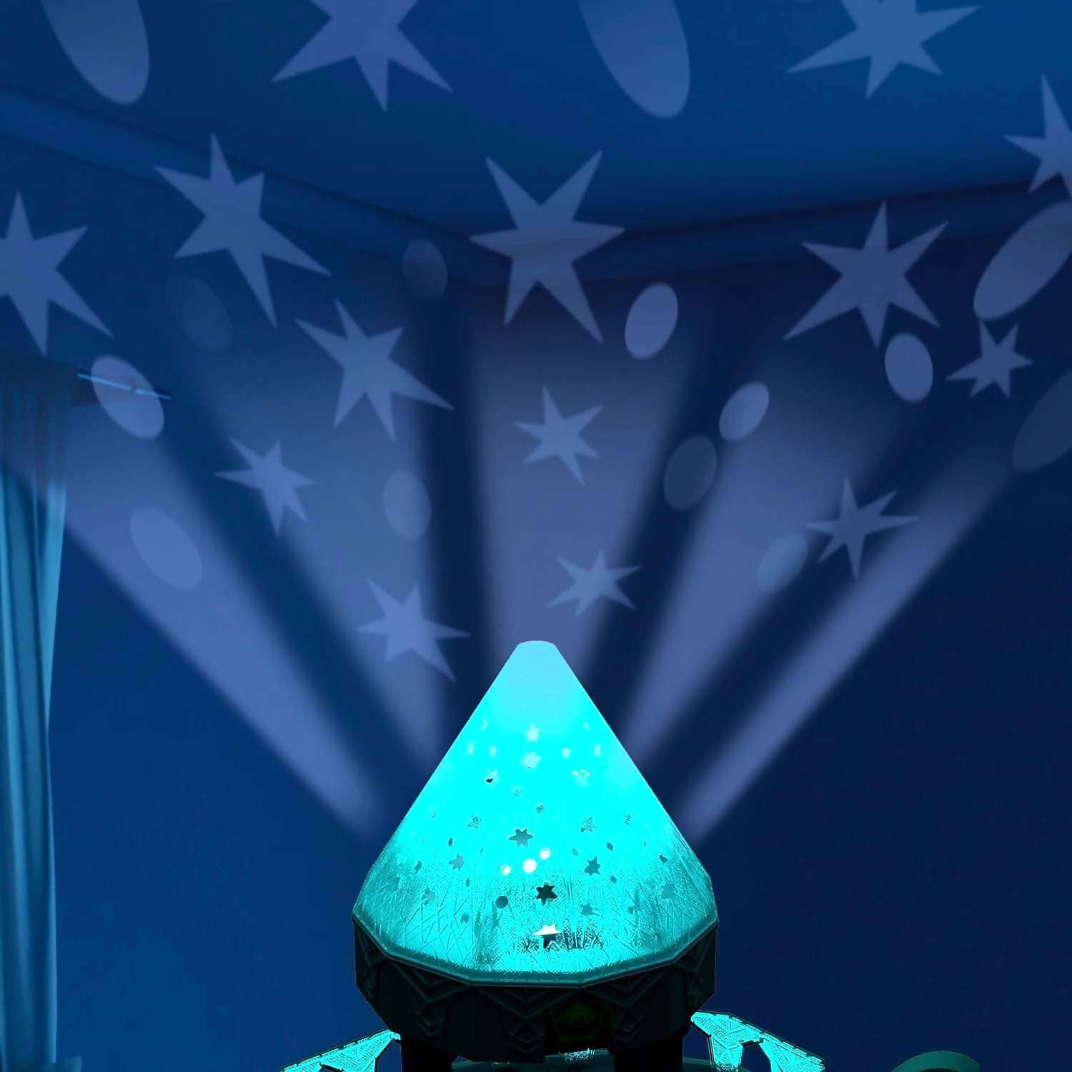 - The magic of the castle comes to life with the light-up dome -- press the Star Reveals button and watch a starry night sky appear with a light-up projection for 2 minutes; press again to dim.