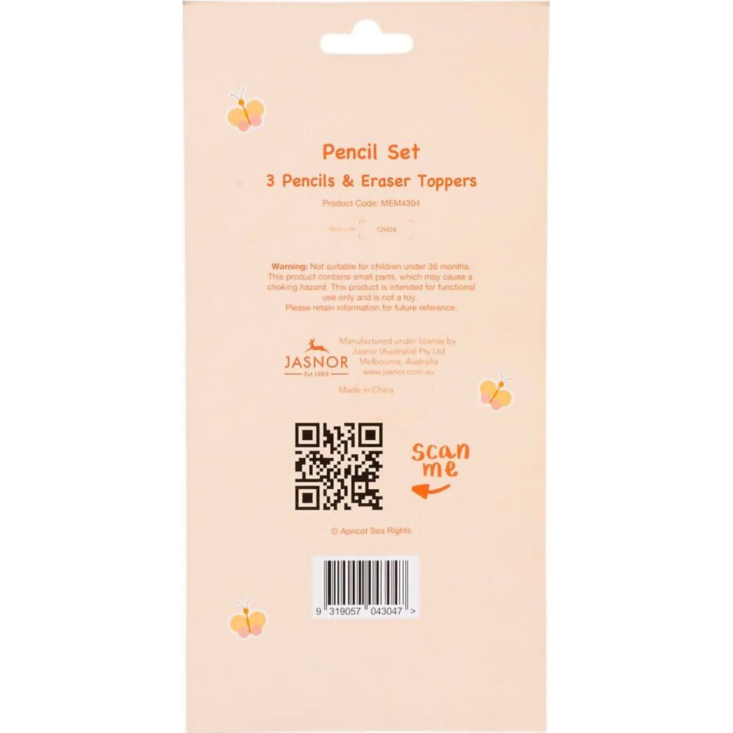 Children will love to learn to draw and write with these vibrant and fun grey lead pencils. This set of 3 pencils feature character eraser toppers of Emma Memma, BB Butterfly and Waffles Wombat.