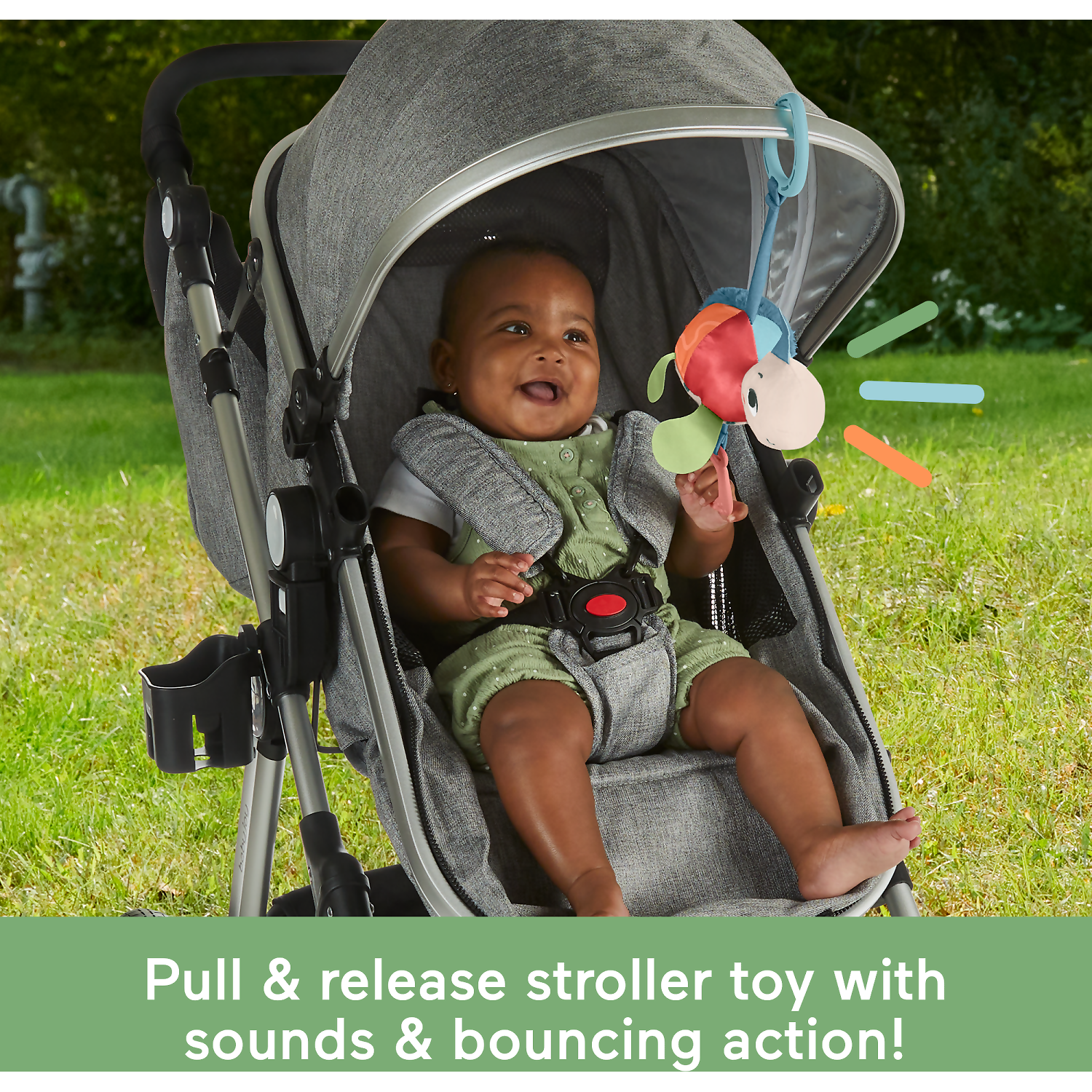 - Take-along plush sea turtle stroller toy with fun bouncing action & jingle sounds to delight your baby