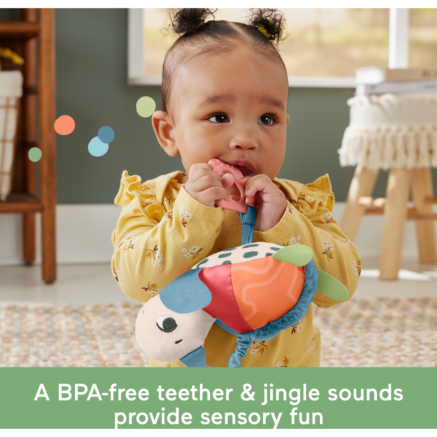 - BPA-free teether made with plant-based materials (minimum 20% bio-based material)