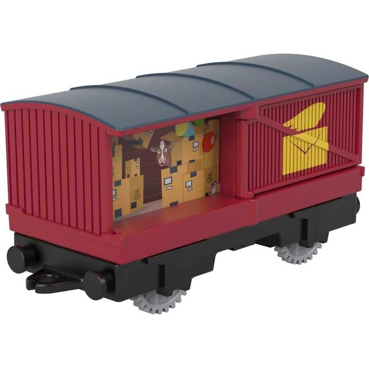 - Battery-powered motorised Percy engine with festive drum and mail cars
