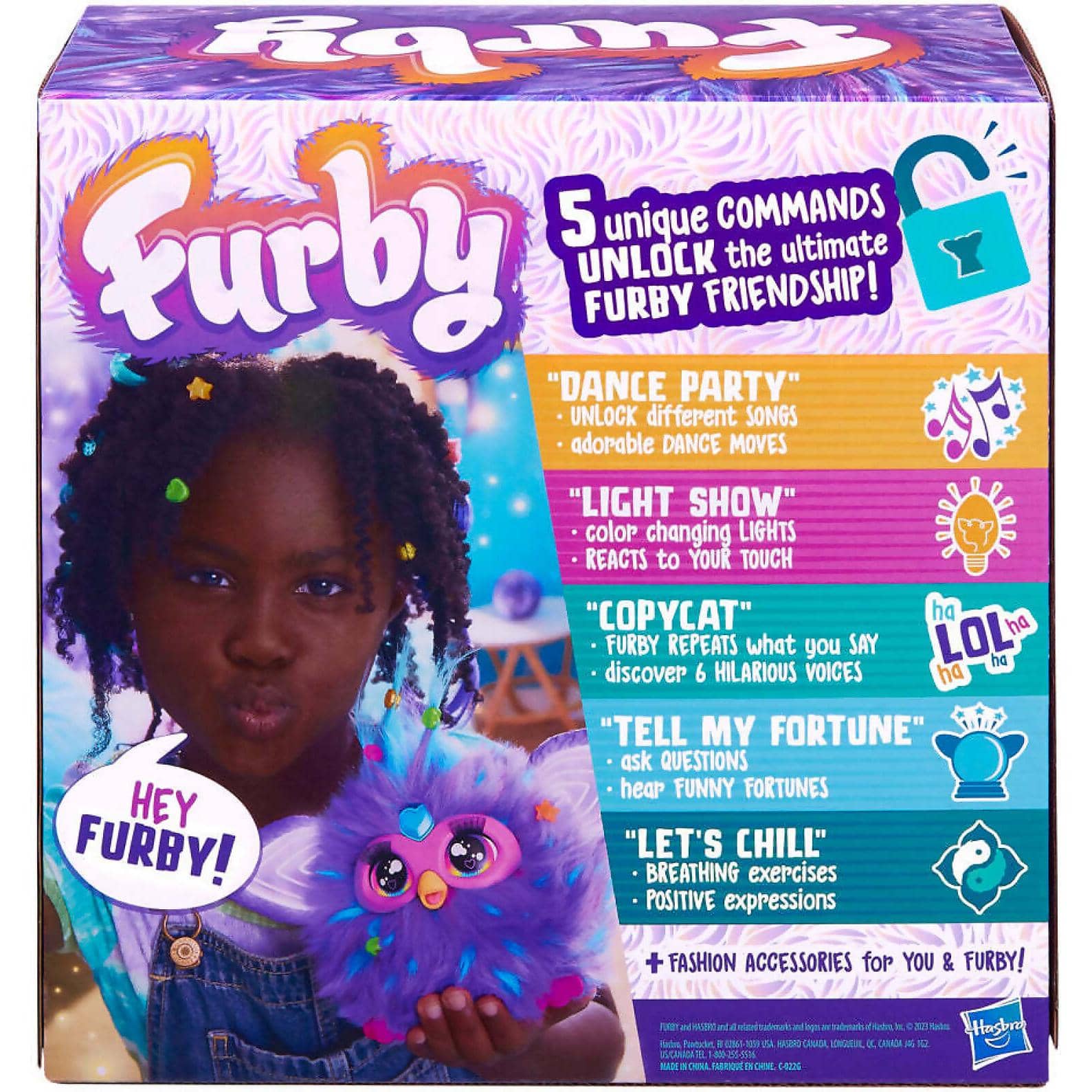 Hey shopper, meet Furby! This curious little creature is an incredibly interactive toy friend with 5 voice activated modes and over 600 phrases, jokes, songs, and so much more to discover. Tell Furby what you want to do with these 5 commands: Dance Party, Copy Cat, Tell My Fortune, Let's Chill, and Lightshow. Furby also responds to hugs, pats on the head, shaking, and feeding its pretend pizza charm (or your finger - yum). The more they play, the more fun they can unlock! Care for Furby by feeding them and combing their hair. Dress them up with the clip-on beads and make fashion accessories that kids can wear, too. This electronic plush toy for 6 year old girls and boys and up makes a great gift for kids and a fun companion to have by their side. As Furby would say, 'Dah-no-lah' (party time!) Furby and all related properties are trademarks of Hasbro.HEY BESTIE, MEET FURBY: Give kids a friend who's always ready for BFF time with this incredibly interactive toy for girls and boys that moves, talks, sings, lights up, and even responds to speech