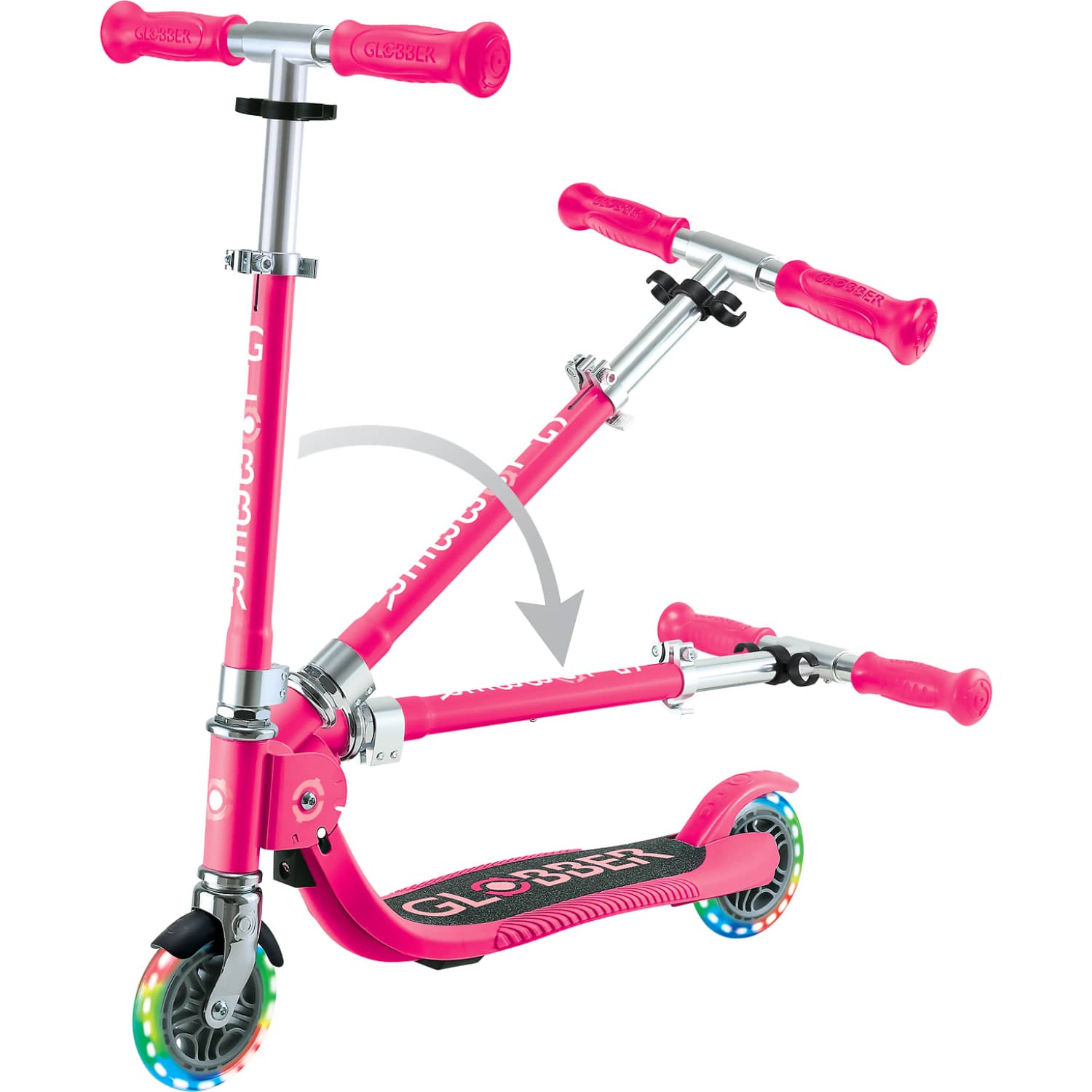 Globber - Flow Foldable Junior Scooter With Lights - Pastel Pink / Fuchsia