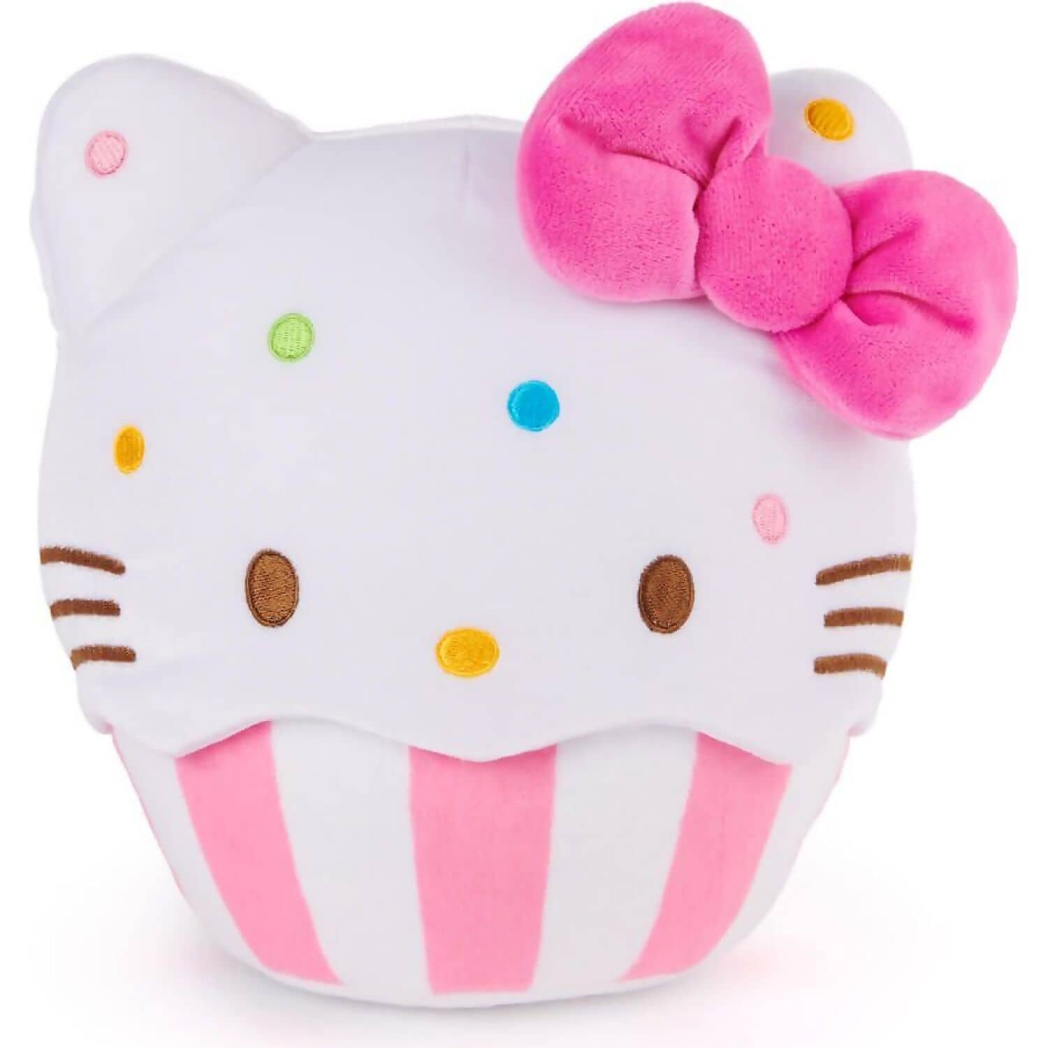 Satisfy your sweet tooth with Hello Kitty and Friends! Hello Kitty is here as an irresistibly cute cupcakes in the latest food-themed Sanrio plush collection by GUND. This large, soft and huggable cupcake plush features Hello Kitty nestled in a pink-and-white striped baking cup, wearing her iconic hot pink bow. Her head is speckled with rainbow embroidered sprinkles, giving this soft plush an adorable and eye-catching design sure to impress any kawaii plushie collector.