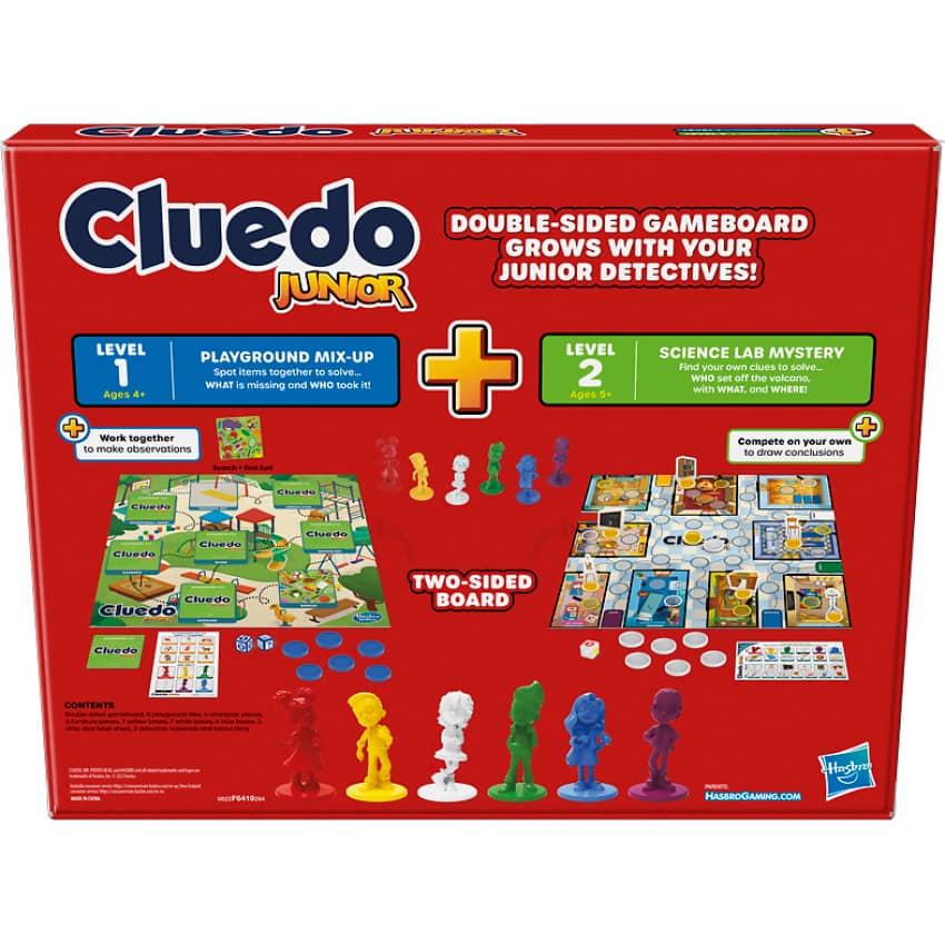 - 2-IN-1 MYSTERY GAME: It's the mystery game that grows with your child! This Clue Junior game offers twice the fun with a double-sided gameboard, featuring 2 school-day mystery games and 2 levels of play