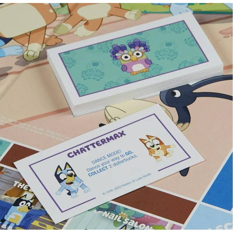Introduce little ones to the game of Monopoly with this Bluey themed Monopoly Junior game!In this board game, kids can imagine taking a fun adventure all over town with Bluey and her familyThe properties on the gameboard feature familiar locations that Bluey fans will recognize such as Bluey's House, The Dump, Uncle Stripe's Pool, Rug Island, and the Nail SalonIn the Monopoly Junior: Bluey Edition game, players go around the board as Bluey, Bingo, Mum, or DadPlayers move around the board buying properties and collecting rent throughout the game. The player with the most dollarbucks at the end wins the gameMonopoly Junior is a good introduction to the Monopoly game. It's designed to be fast, fun, and exciting for younger players.Recommended for ages 5+