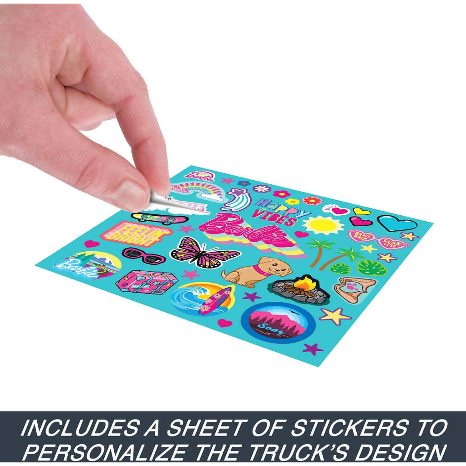 Take an epic road trip with two Barbie dolls in the Hot Wheels RC Barbie SUV! This full-function remote control vehicle fits 2 full-size Barbie dolls, has rear storage for accessories and includes a sheet of stickers for the ultimate in customization.