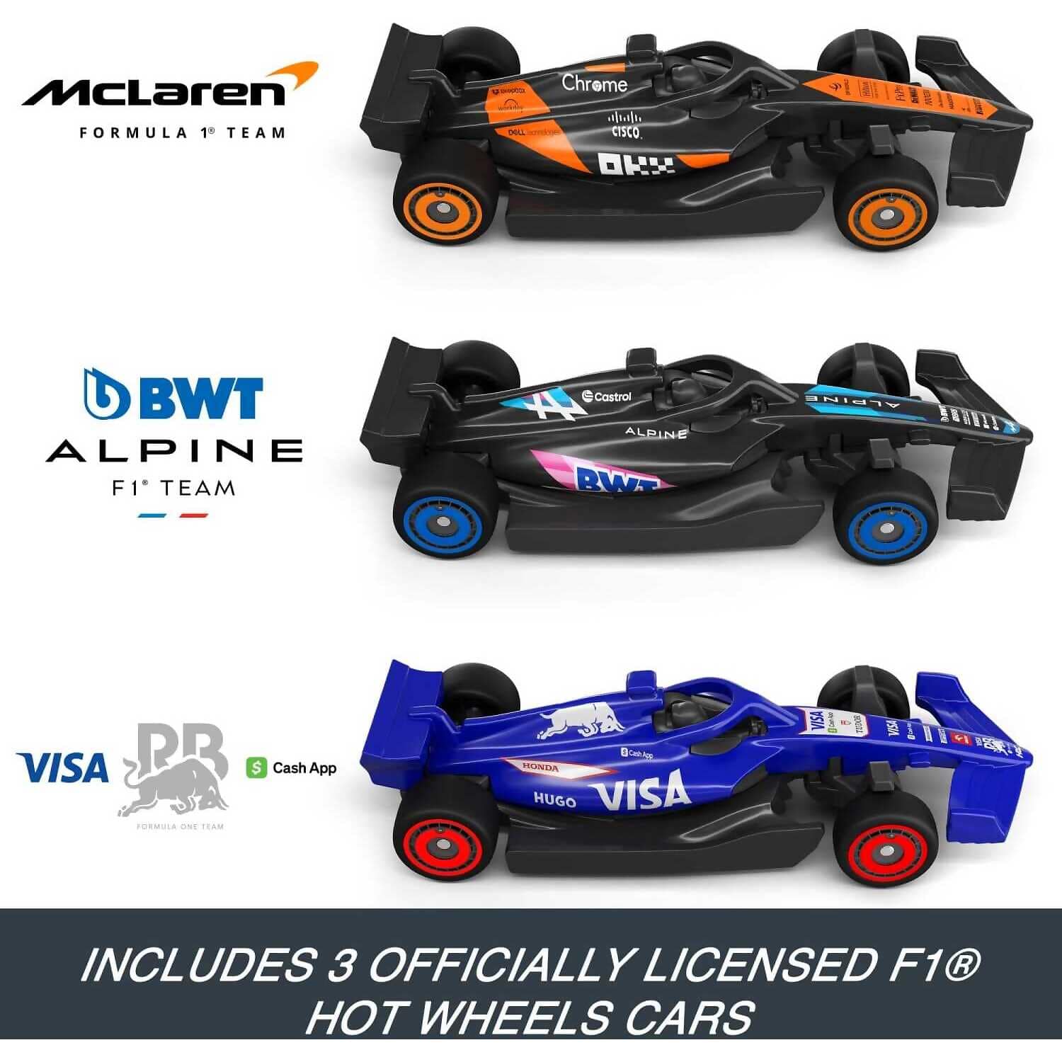- It includes three 1:64 scale die-cast vehicles with castings and decos of three prominent Formula 1® race teams such as McLaren Formula 1 Team, BWT Alpine F1® Team and Visa Cash App RB Formula One Team. (Teams may vary.)