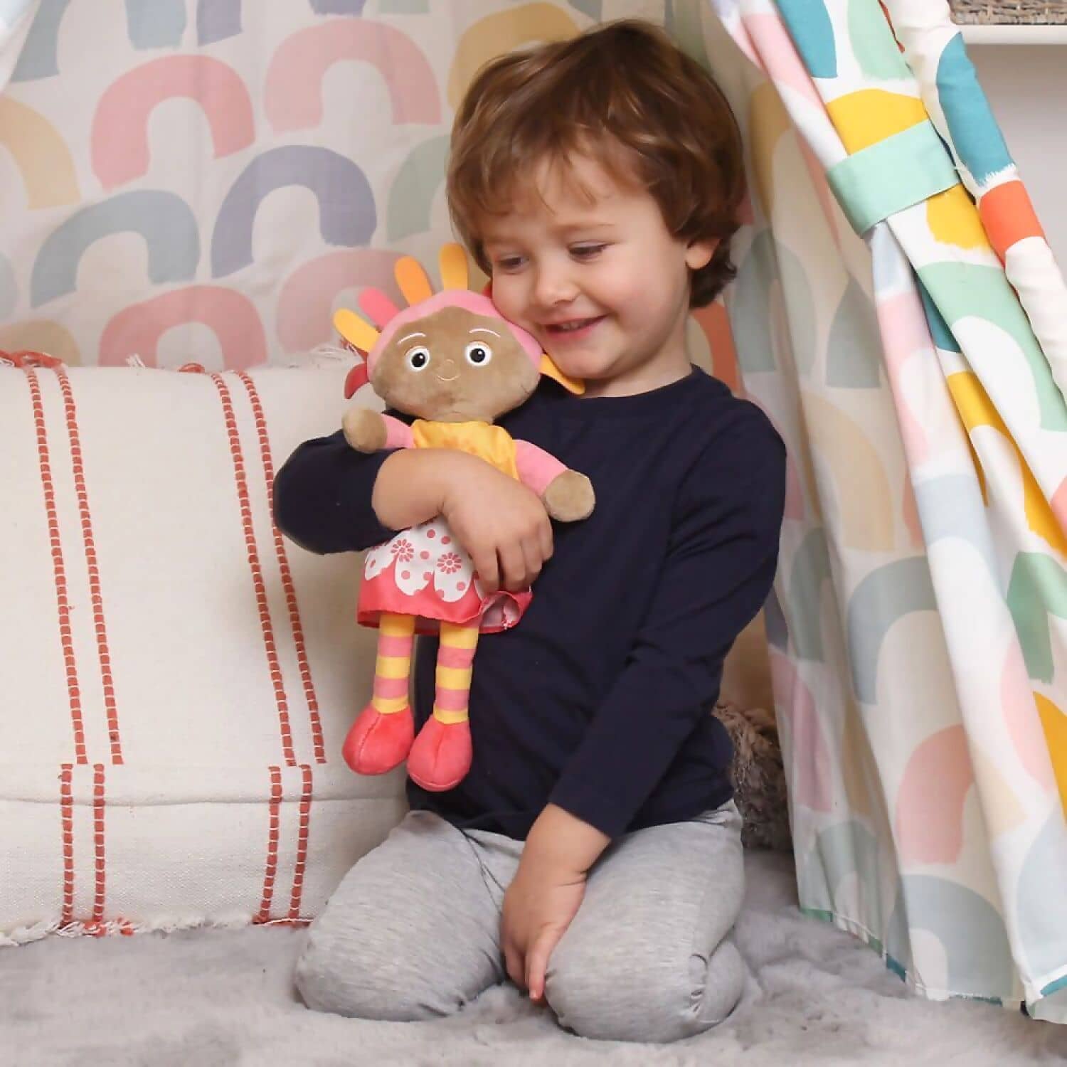 Super-soft and perfect for cuddles The talking Upsy Daisy is the perfect companion for little fans of the show, In the Night Garden Gently squeeze her hand to hear cute phrases and recognisable theme tune music Available in the popular Igglepiggle and Makka Pakka characters too – collect all 3 Suitable from birth Made from 100% recycled fabric Presented in an open display box 2 x AAA batteries required (not included)