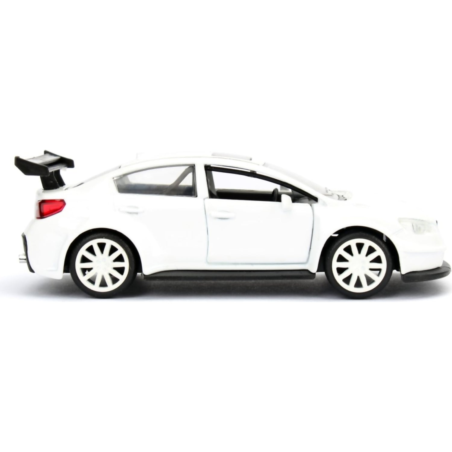Made from diecast metal with plastic components, the model features opening front doors and a detailed interior. Real rubber tyres and free-rolling wheels enhance its realism and play value. Whether displayed or used for imaginative play, this WRX delivers cinematic flair in a compact, collector-friendly format.