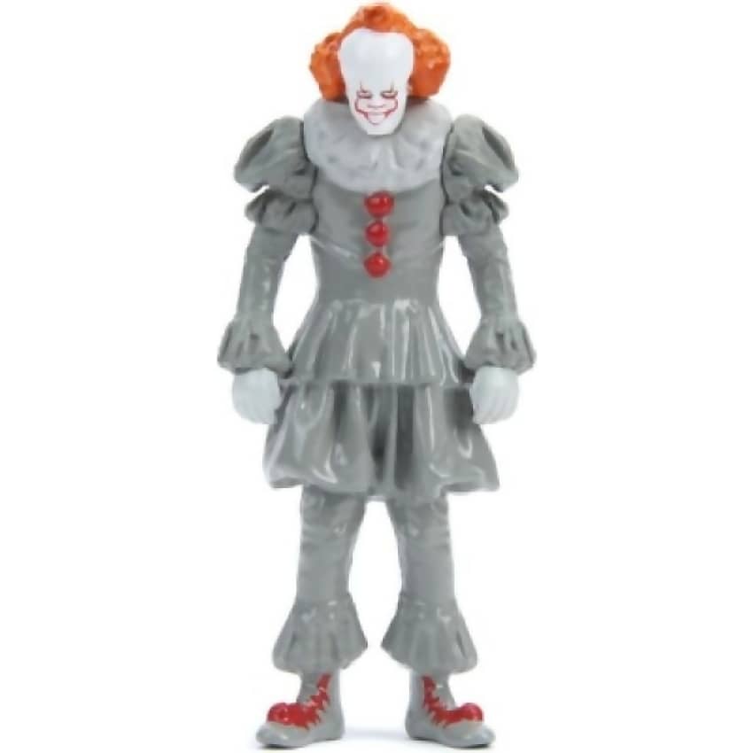 Crafted from diecast metal with plastic components, the vehicle includes opening doors, bonnet, and boot, revealing a detailed interior and engine bay. Real rubber tyres and free-rolling wheels enhance its realism and display appeal. Paired with a 2.75 Pennywise figure in full costume, this set delivers high-quality craftsmanship and collector-grade fright.