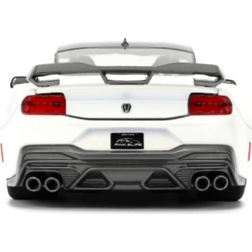 The Jada Toys - Pink Slips Mustang Dark Horse 2023 Edition 1:24 Scale Diecast Vehicle is a bold and beautifully crafted replica of the iconic Ford Mustang. Featuring a striking black and pink finish, this model captures the aggressive styling and muscular stance of the real vehicle. With opening doors and bonnet, it offers collectors and enthusiasts a detailed glimpse into the Mustang’s powerful design.
