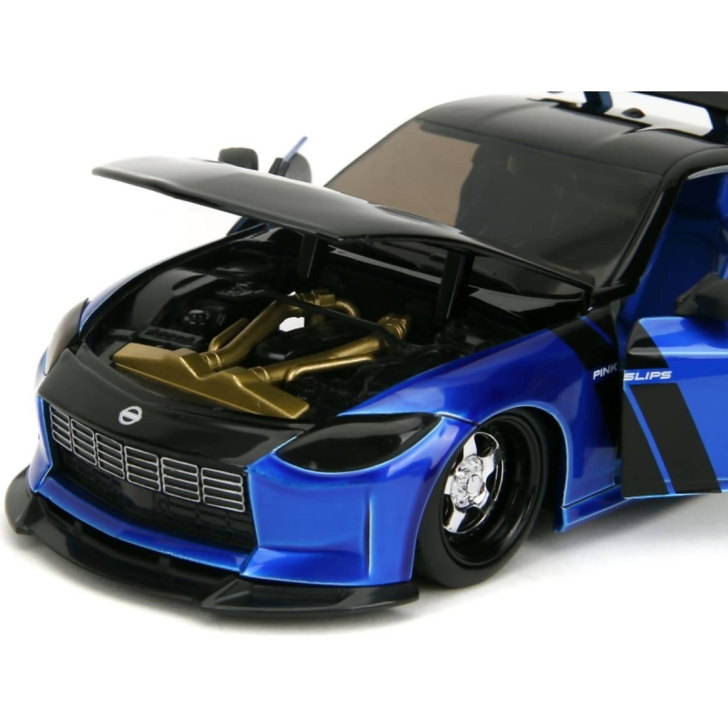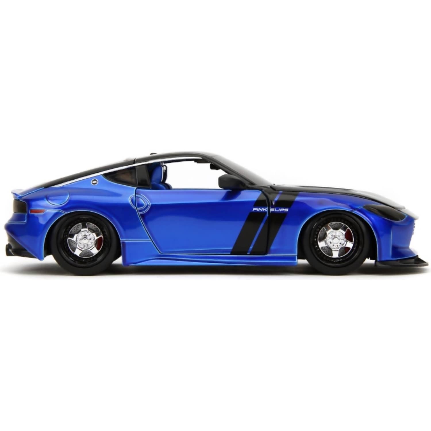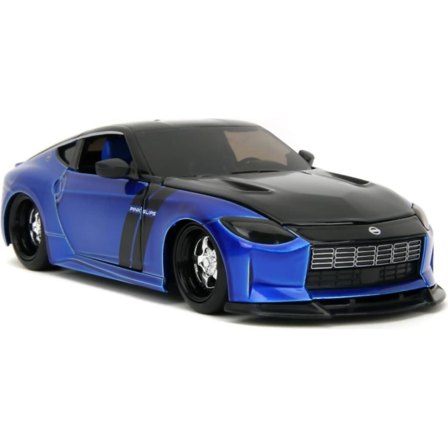Celebrate the rebirth of a legend with the Pink Slips Nissan Z, recreated in 1:24 scale by Jada Toys. This officially licensed die-cast model captures the sleek lines and bold styling of the 2023 Nissan Z, finished in a striking blue with black accents. With its aggressive stance and modern design, it’s a standout piece for collectors and fans of Japanese performance cars.