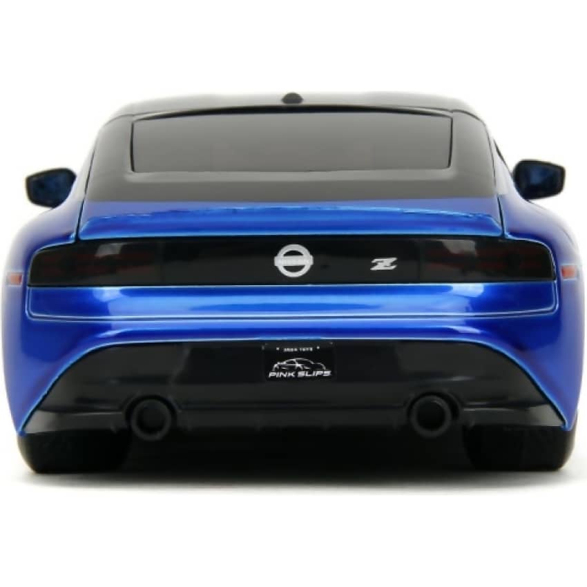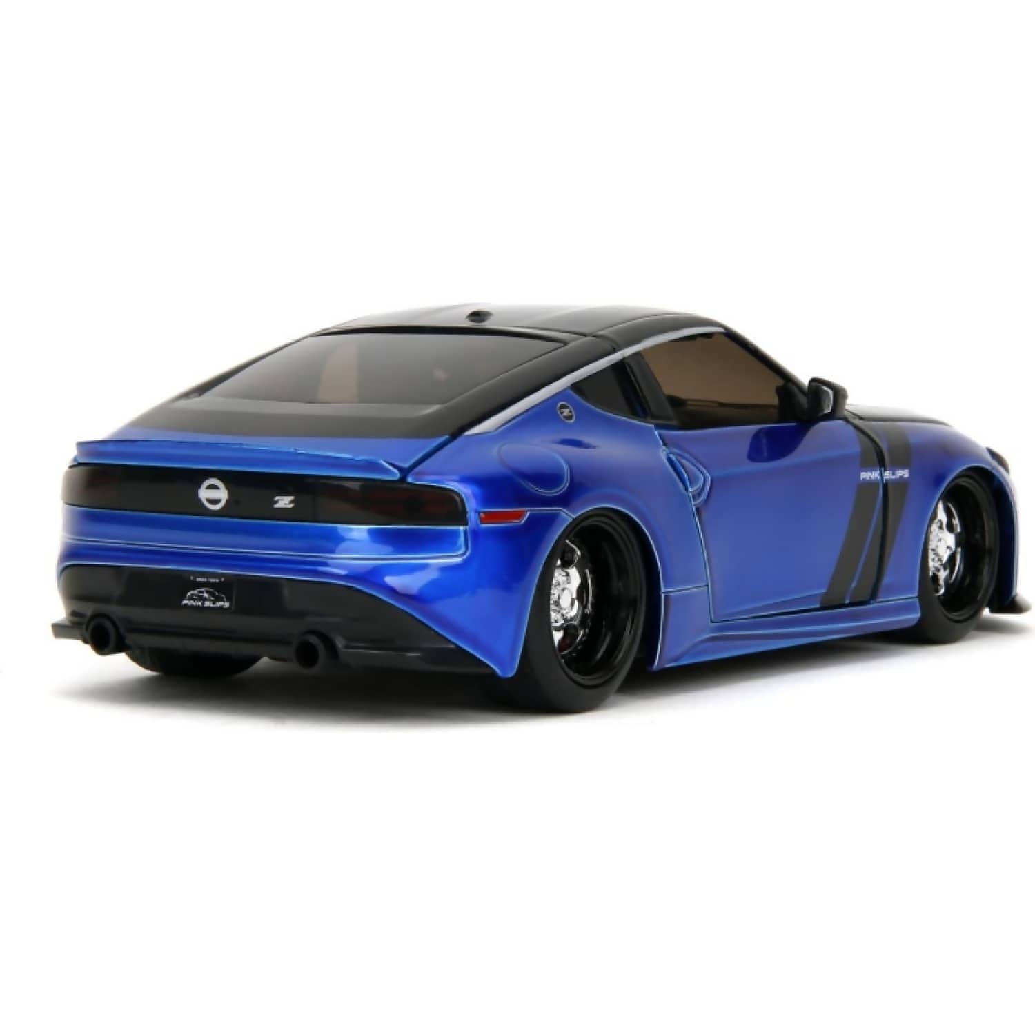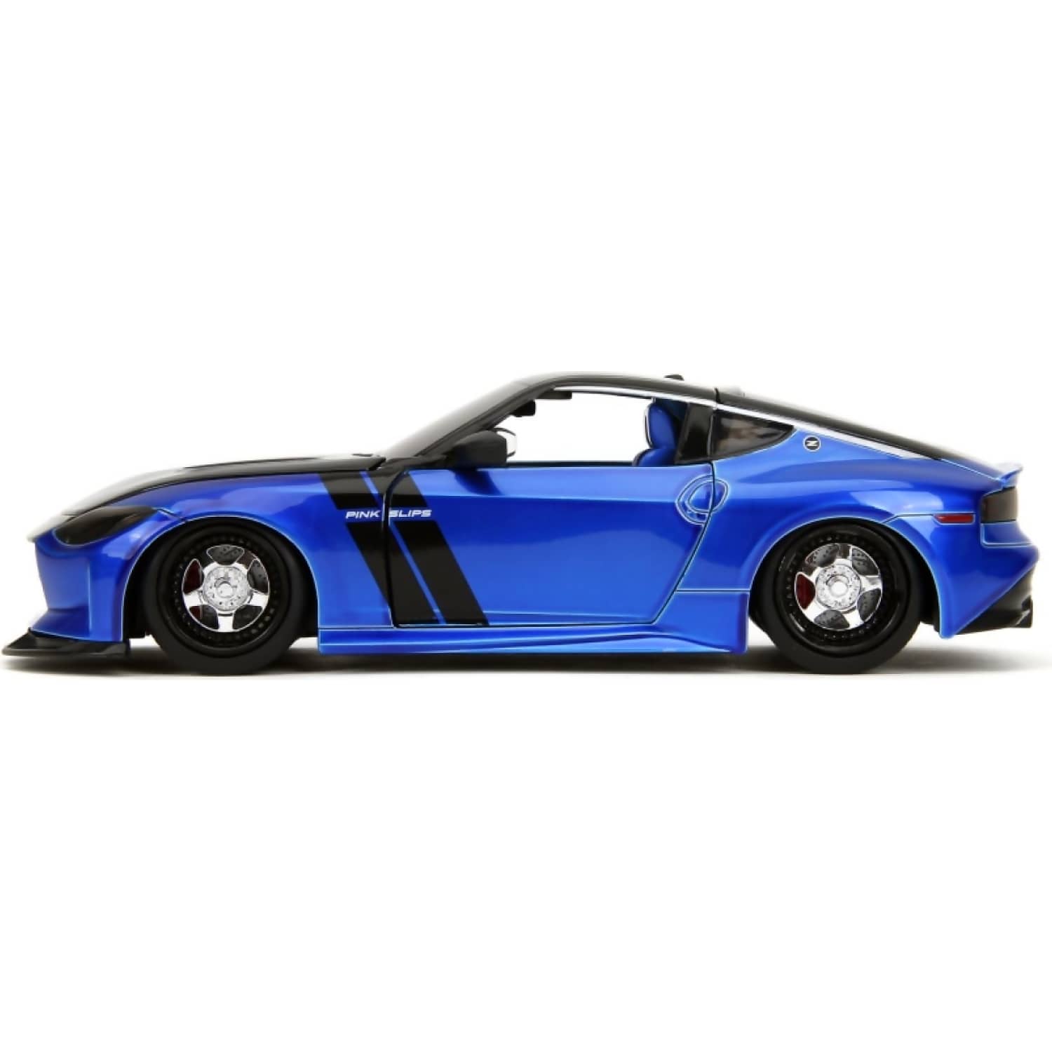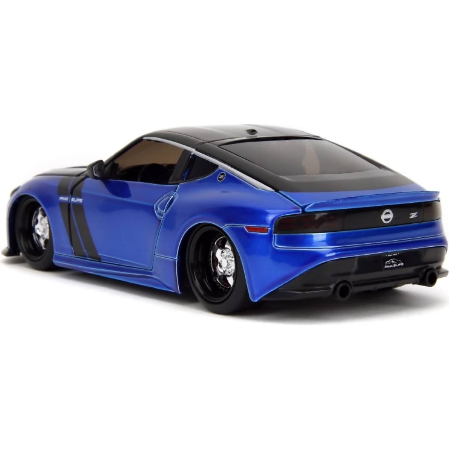 Celebrate the rebirth of a legend with the Pink Slips Nissan Z, recreated in 1:24 scale by Jada Toys. This officially licensed die-cast model captures the sleek lines and bold styling of the 2023 Nissan Z, finished in a striking blue with black accents. With its aggressive stance and modern design, it’s a standout piece for collectors and fans of Japanese performance cars.