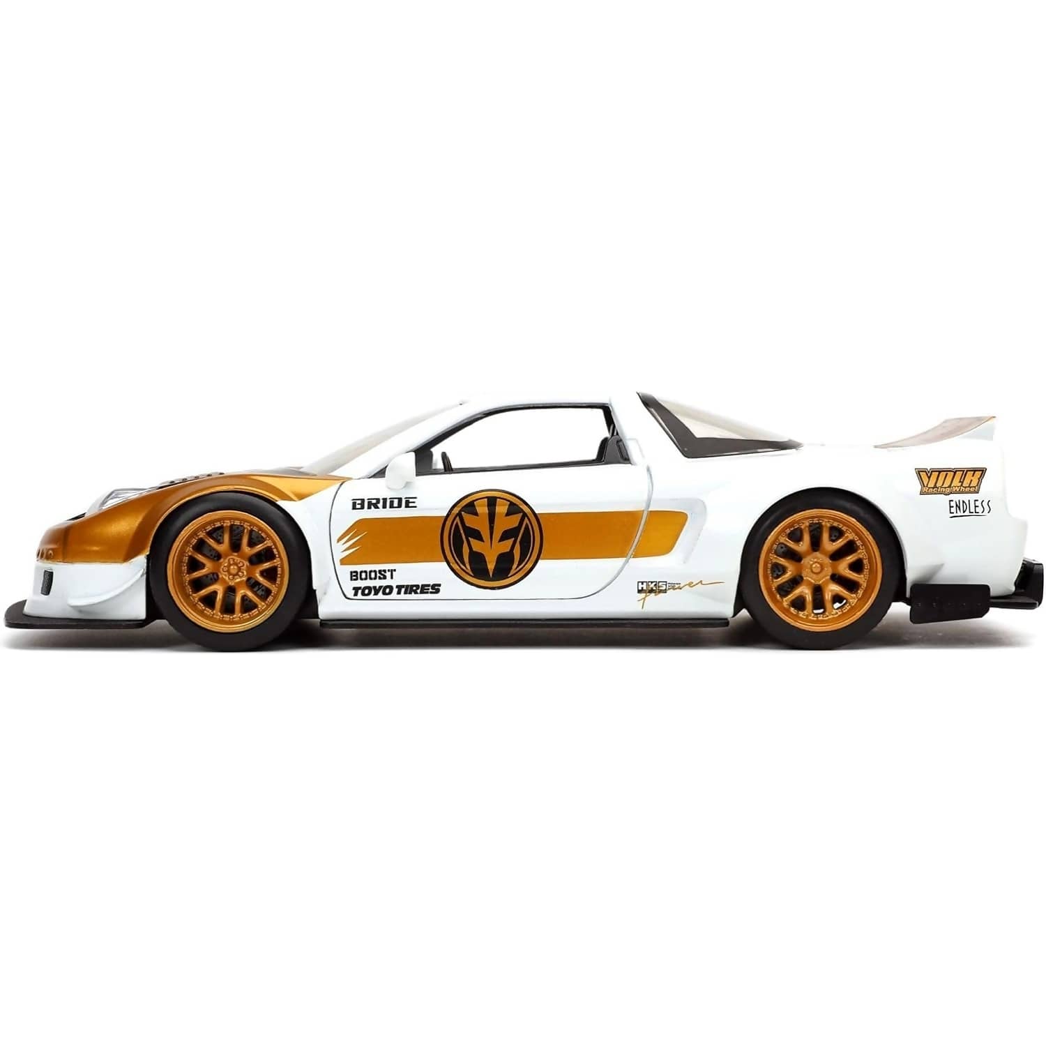 This 1:24 scale Honda NSX Type-R Japan Spec with White Ranger figure blends sleek automotive styling with heroic attitude. A must-have for Power Rangers fans and collectors of character-driven diecast vehicles.