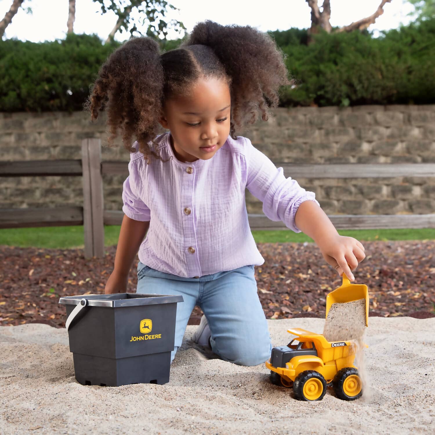 - Sandbox Toy Set: Includes square bucket, shovel and a yellow John Deere Construction dump truck