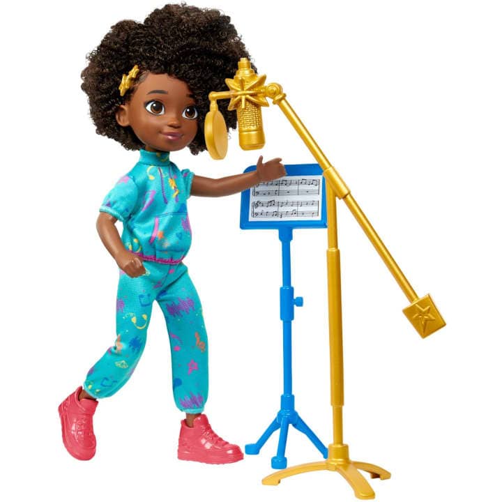 There's also a collectible record that unlocks a music clip in the Transforming Musical Star Stage playset (sold separately). Colors and decorations may vary.