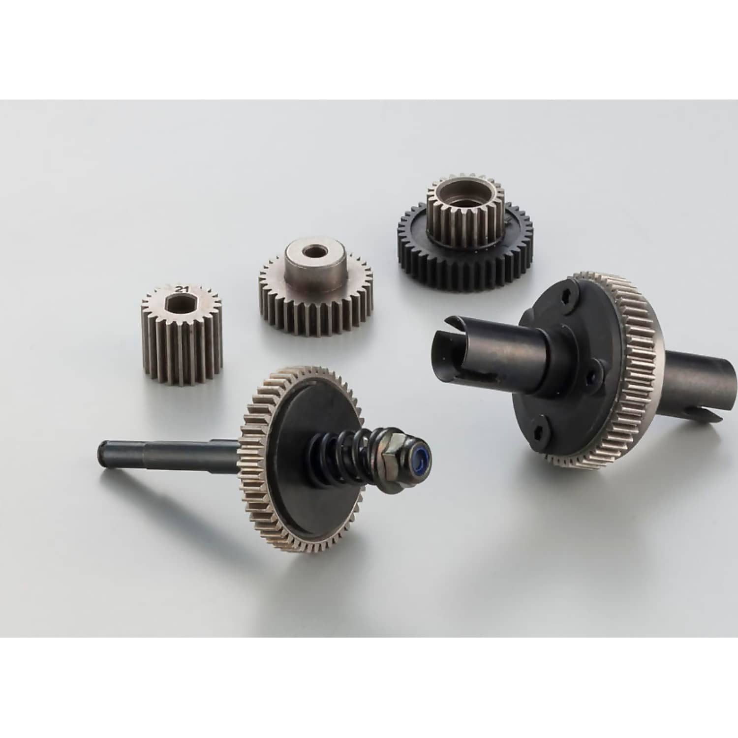 - Pre-assembled gearbox and oil shocks (requires filling with the included oil)
