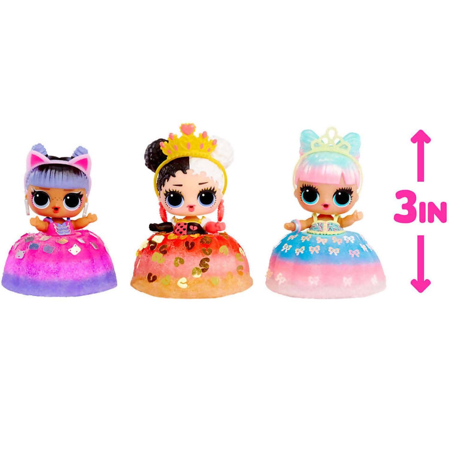 Each LOL Surprise Mix & Make Birthday Cake doll comes with three mixes, and decorative glitter to design the cake dress of your dreams! Simply pour the ingredients, add water, let set, and decorate to make a colorful, sparkly cake dress for your doll!