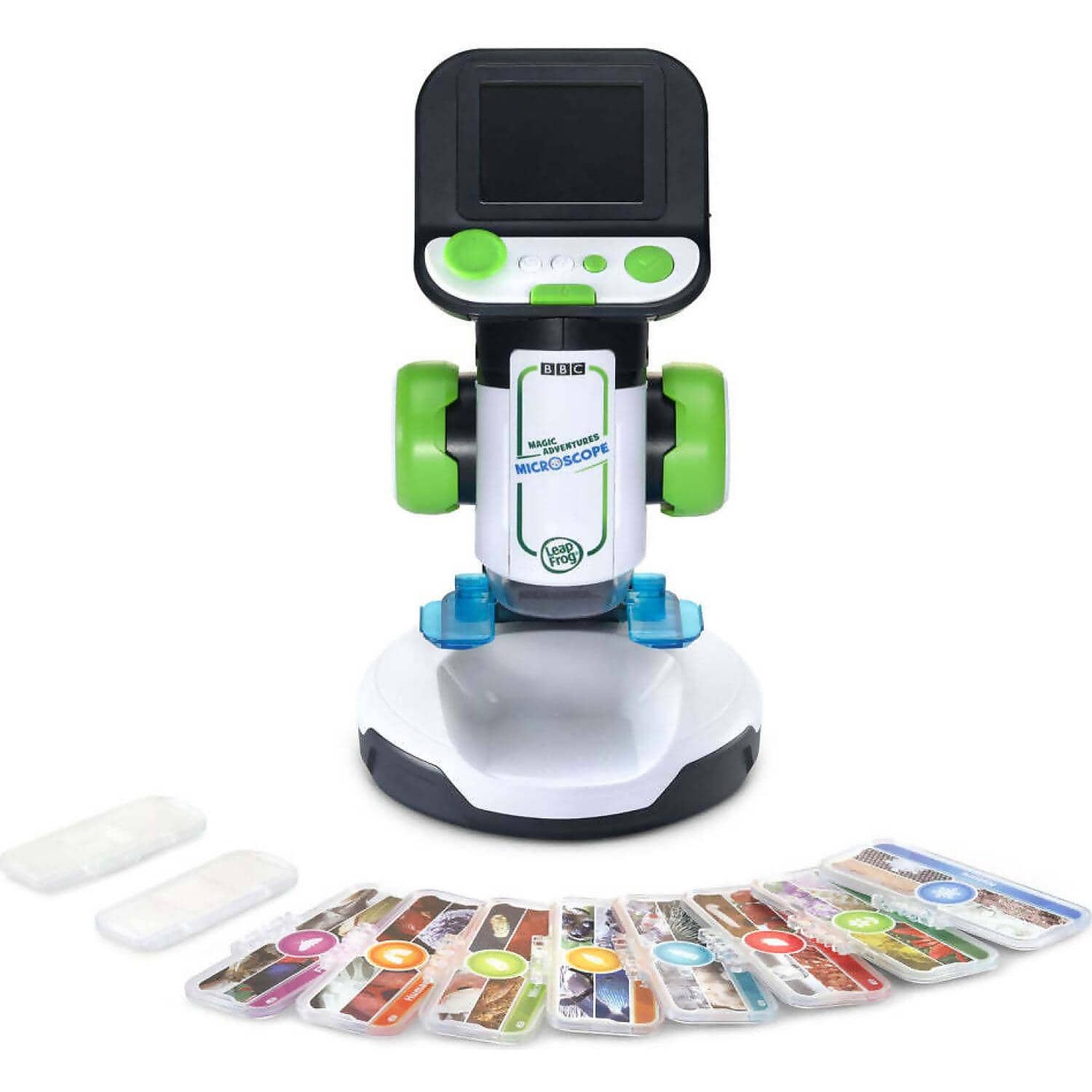 Explore tiny worlds full of huge discoveries with the Magic Adventures Microscope by LeapFrog. Young biologists can zoom in on flowers, animals, food, minerals and more using eight double-sided smart slides that activate amazing BBC videos and images. Discover answers to curious questions like: