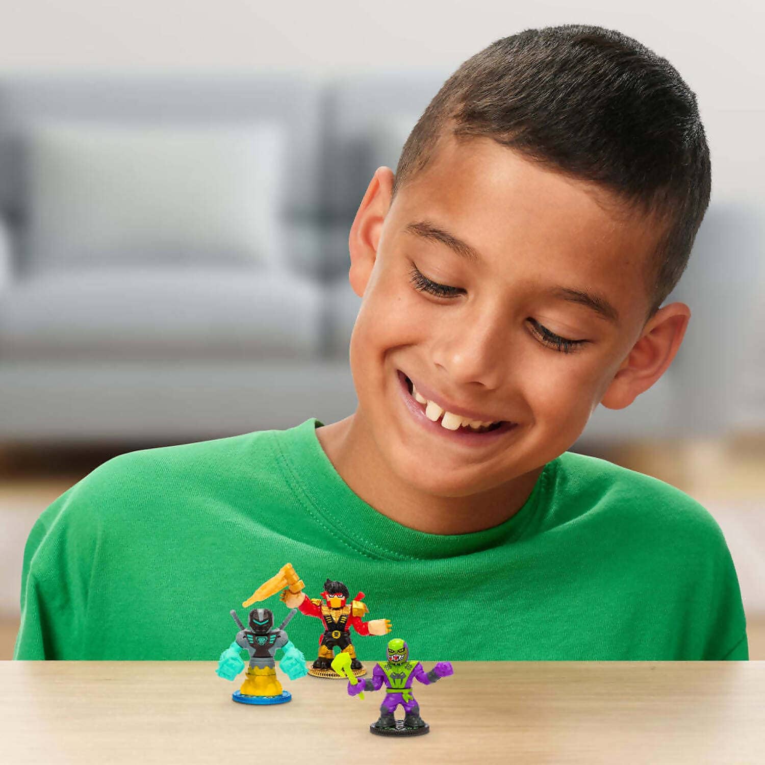 Psyclone Shutdown’s devastating 'Tornado Fists,' Chux’s deadly 'Disc Lasso,' and Venom Fang’s menacing 'Cobra Cane.' But that’s not all! Each of these three warriors' weapons is INTERCHANGEABLE! Store your weapons on the weapons rack and mix, swap, and match them onto your warrior for the best match-up and upper hand in battle. Which weapon will your child think is the most powerful? Utilize the joystick controller provided to perfect each character's weapon and fighting style to be the feared opponent in battle!