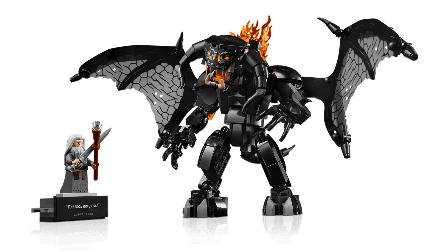 Bearing a plaque with the words ‘You Shall Not Pass’, the model depicts Gandalf the Grey™ in a fearless stance and the Balrog with its mighty wings unfurled against a blazing wall of flames. Both characters are detachable and the Gandalf minifigure has a staff and sword, while the Balrog figure wields a fiery whip and features posable limbs and wings for dynamic display.