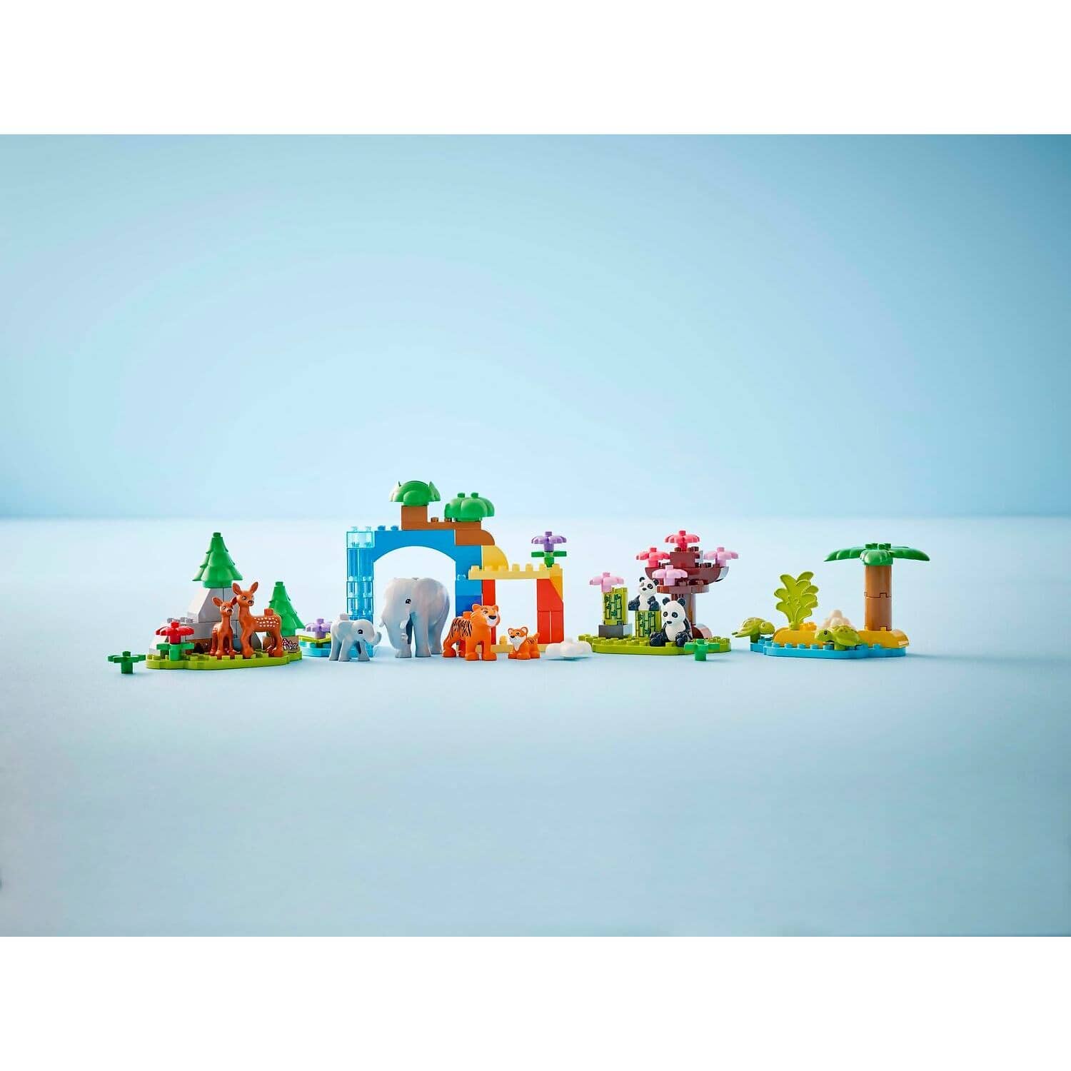 - Imagination toy with 10 LEGO® DUPLO® wild animals for creative story-making – Includes tiger, elephant, deer and panda figures, each with a baby, and 2 turtle figures