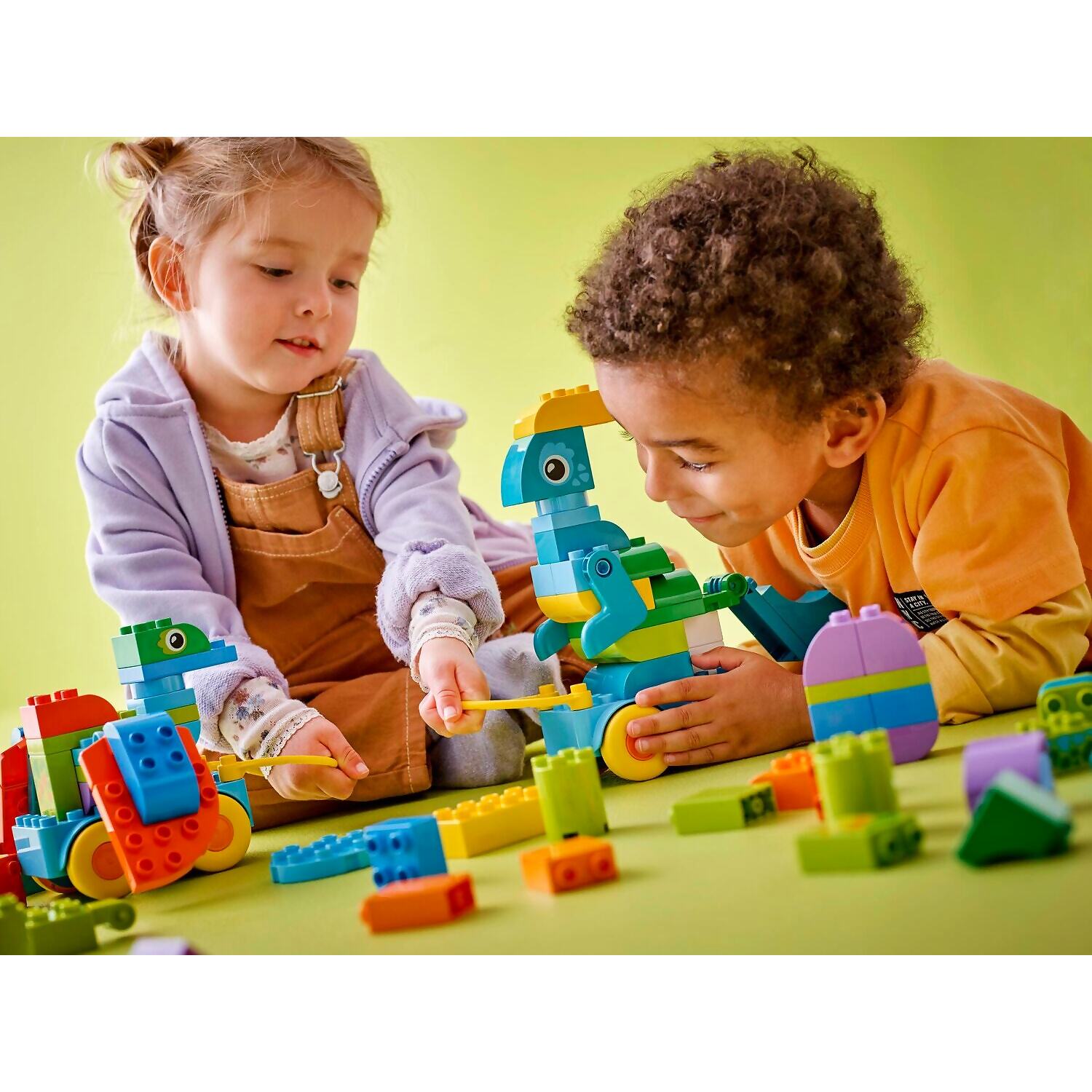 This 3in1 LEGO DUPLO set toddler toy has lots of opportunities for playful learning. It comes with easy-to-handle blocks that are simple to pull apart, teaching toddlers perseverance, focus and imagination skills as they endlessly build and rebuild their creative toy animals. Contains 108 pieces.