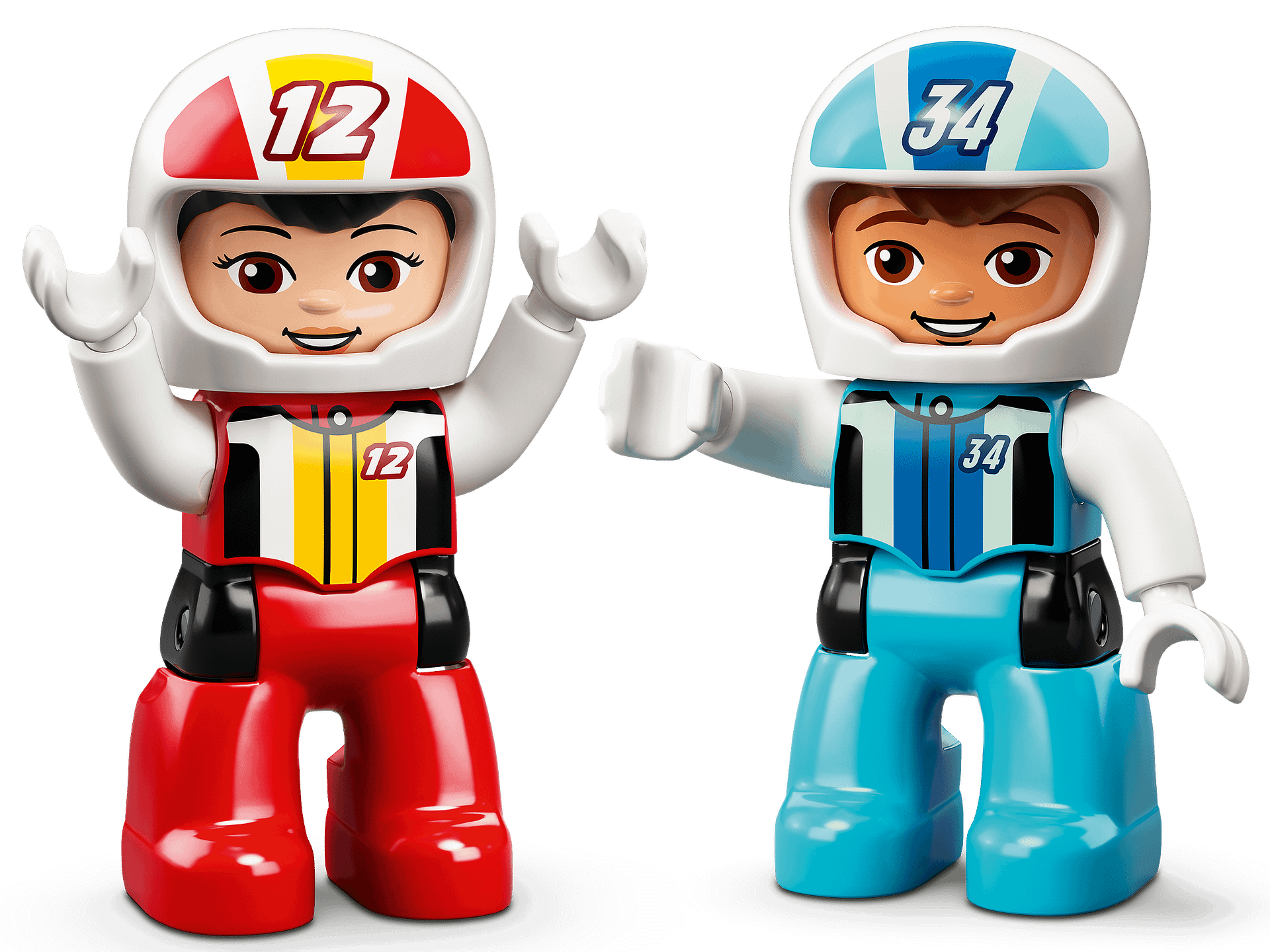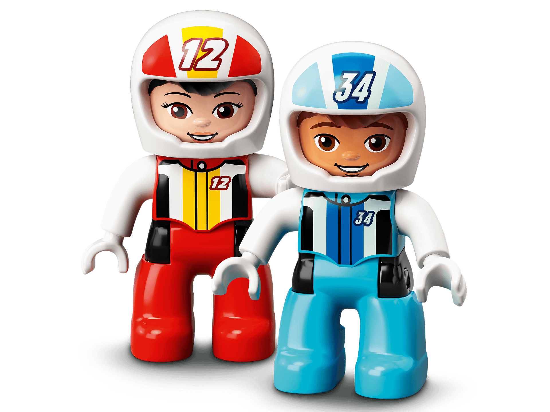 - LEGO® DUPLO® Town Race Cars (10947) is a colorful racetrack playset bursting with imaginative fun, developmental benefits and exciting role-play possibilities to share.