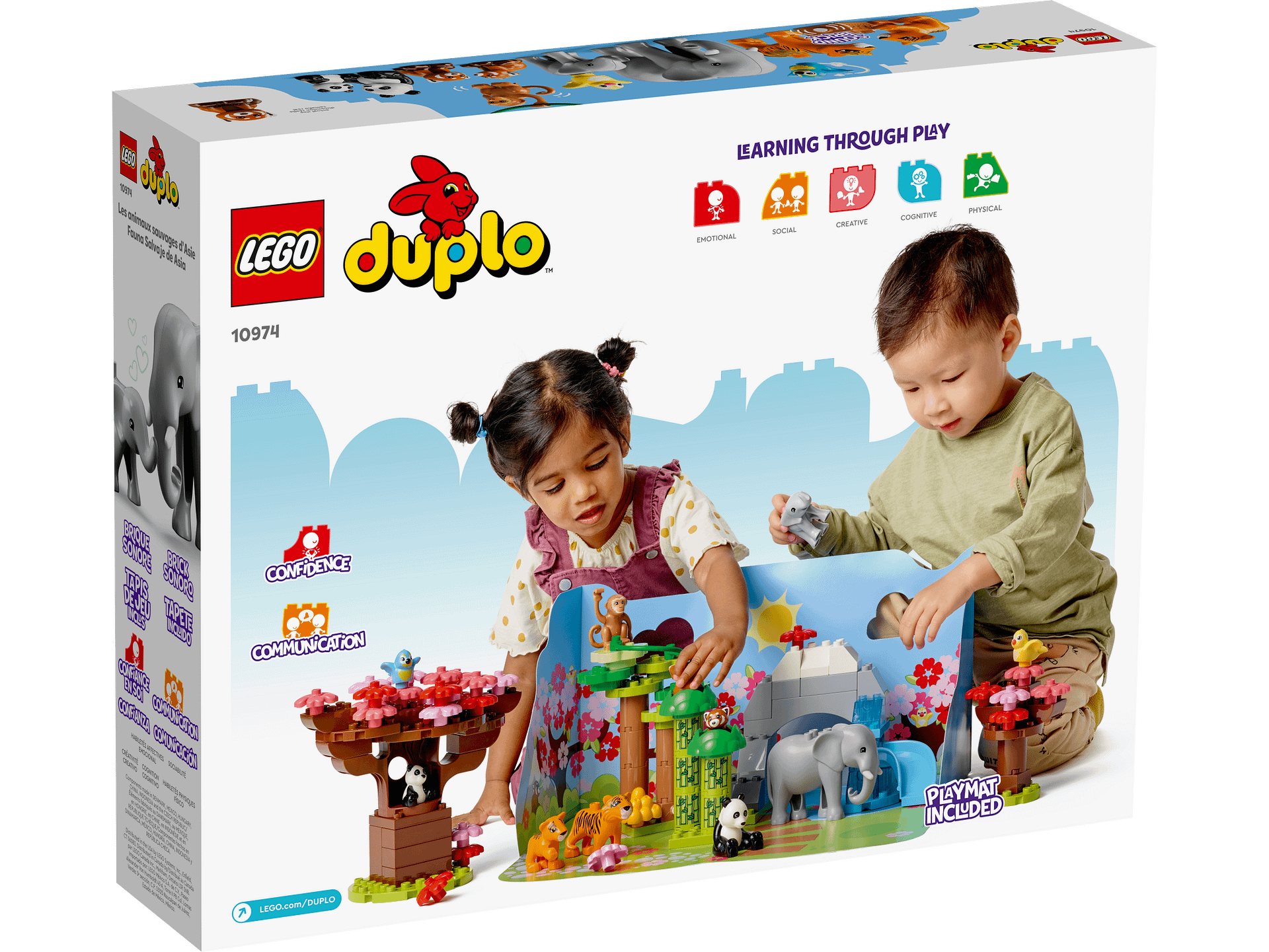 - Explore Asian wildlife – LEGO® DUPLO® Wild Animals of Asia (10974) is a detailed recreation of Asia’s natural habitats, with a cast of native animals, plants and trees as well as realistic sounds