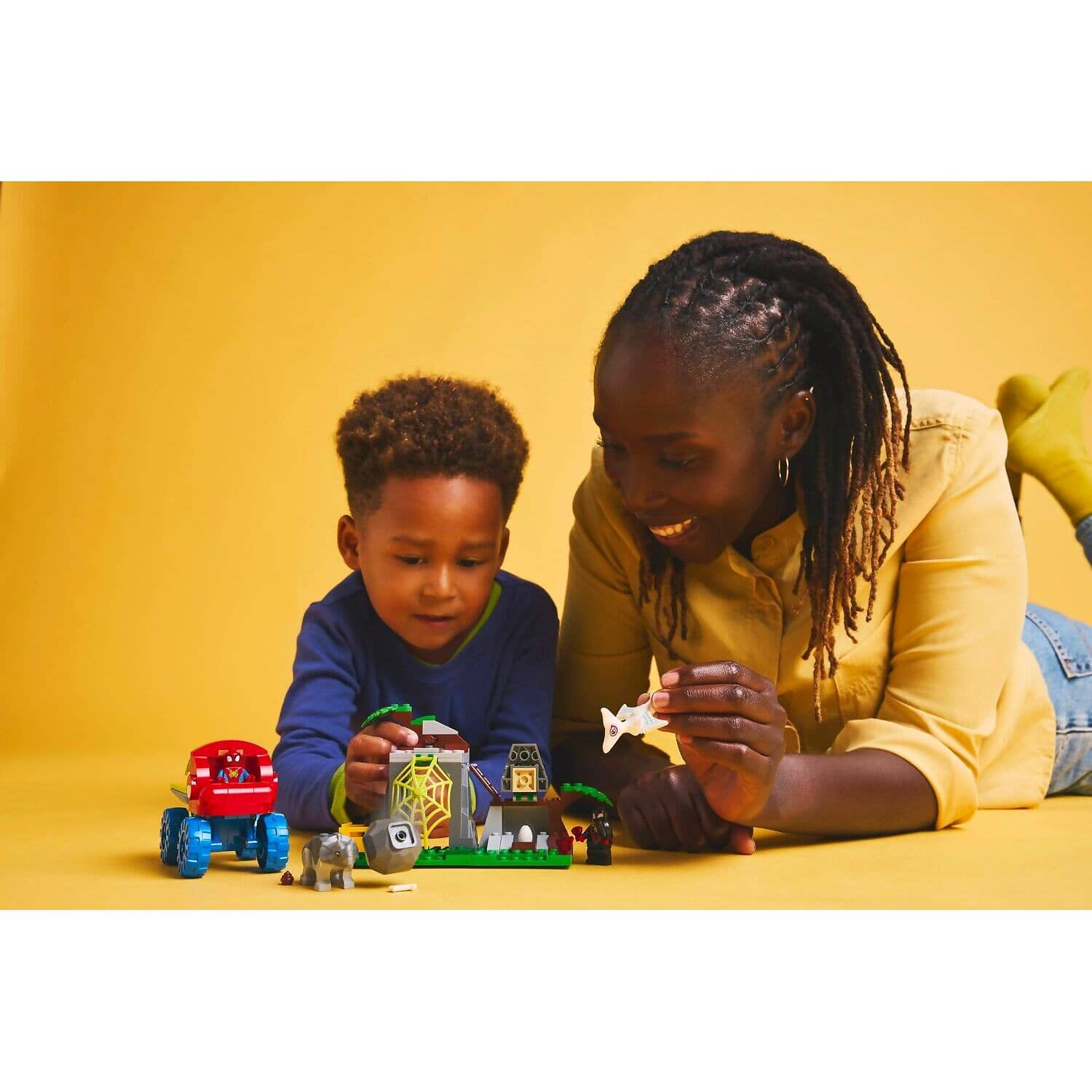 - Build-and-play adventure toys – Creative kids can enjoy an interactive experience with a hidden dino egg, LEGO® Spidey webs to trap villains, and a trigger-operated rockfall